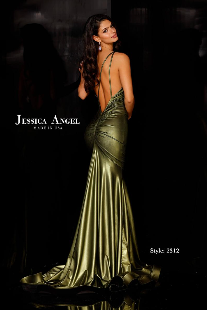 The fabric in this Jessica Angel Collection Long Dress style is Antique Metal Jersey