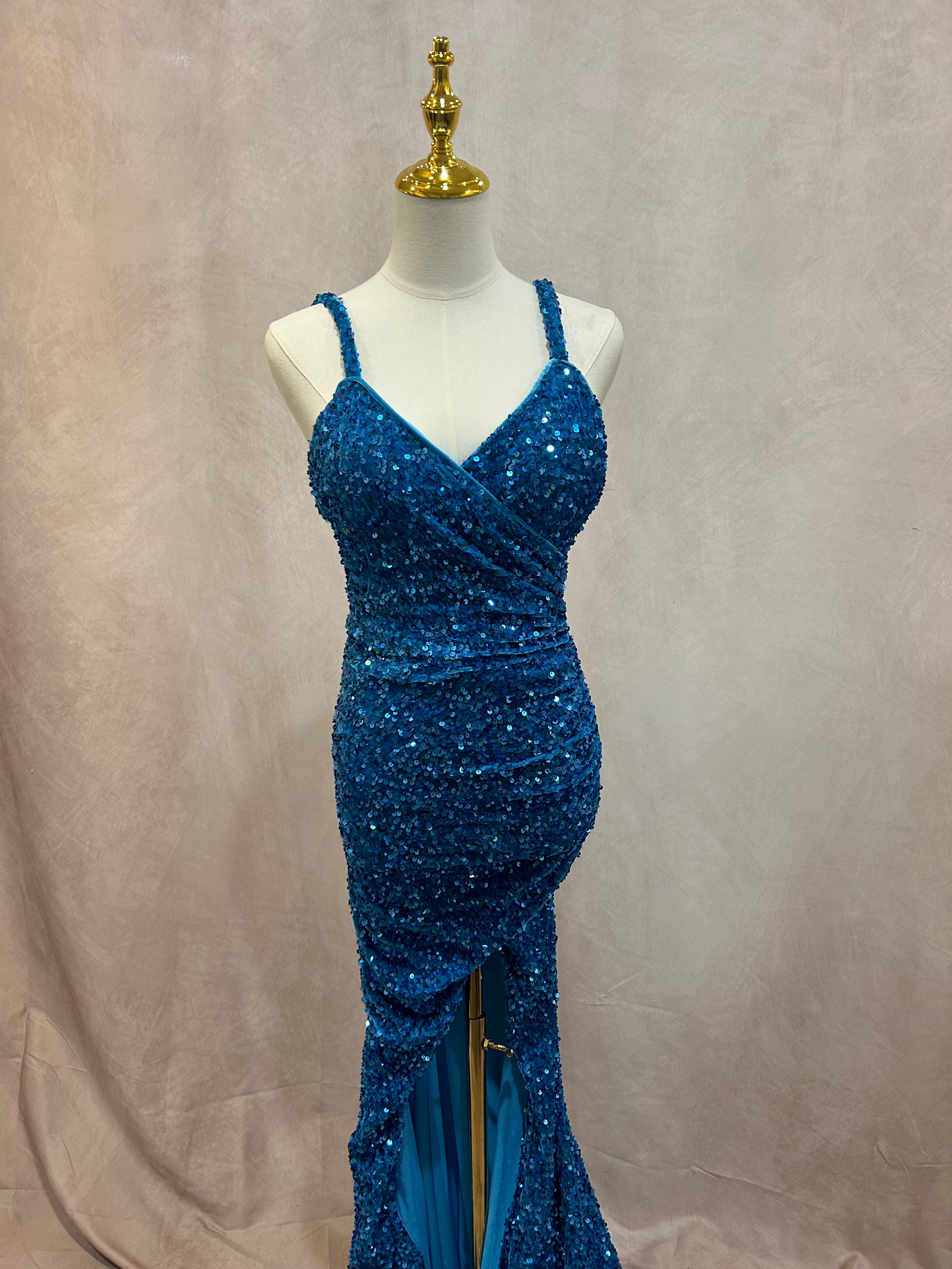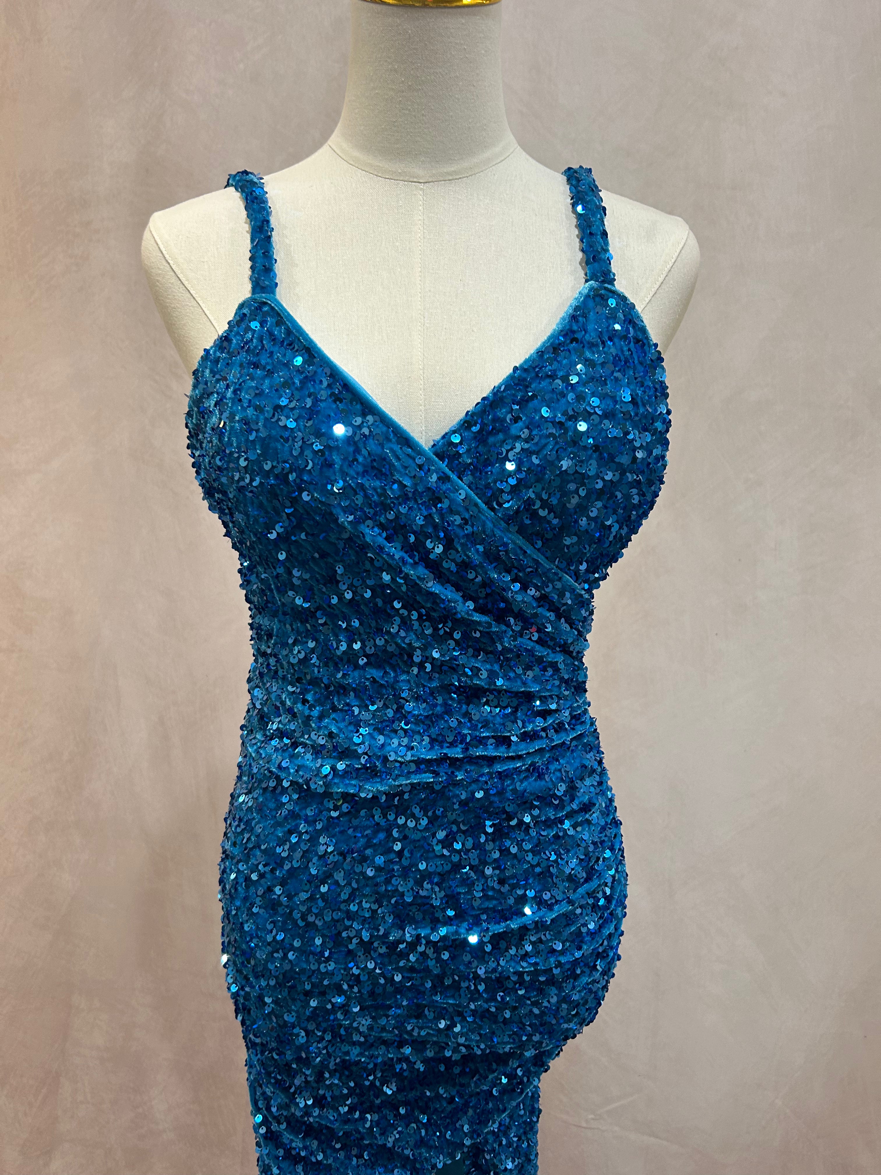 The fabric in this Jessica Angel Collection Long Dress style is Velvet Sequins