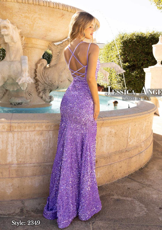 The fabric in this Jessica Angel Collection Long Dress style is Velvet Sequin