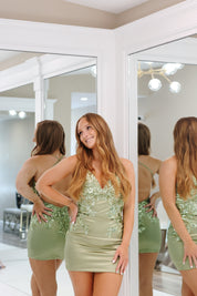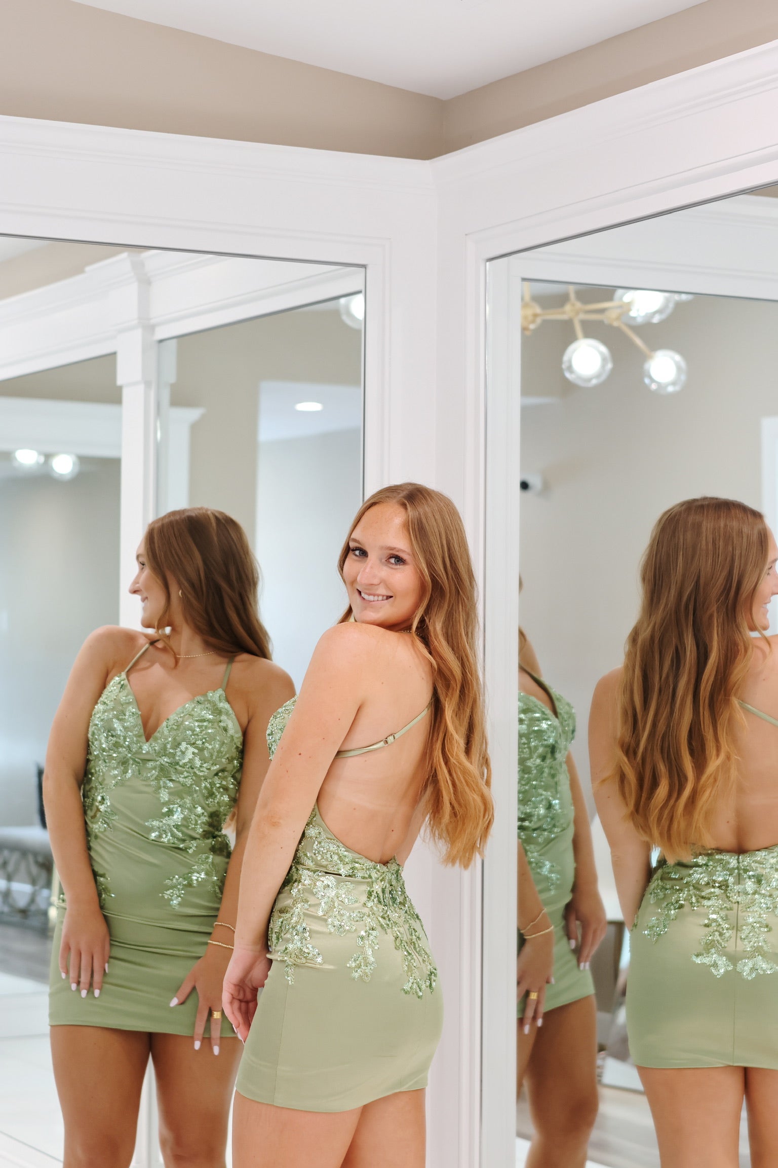 Get ready to shine in this Open Back Satin Mini Dress with Sequin Appliqué! Perfect for cocktail parties, prom, or homecoming, this dress will make you the center of attention. The open back and sequin appliqué add a touch of glam to this otherwise classic silhouette. Be the life of the party in this playful and stylish dress.