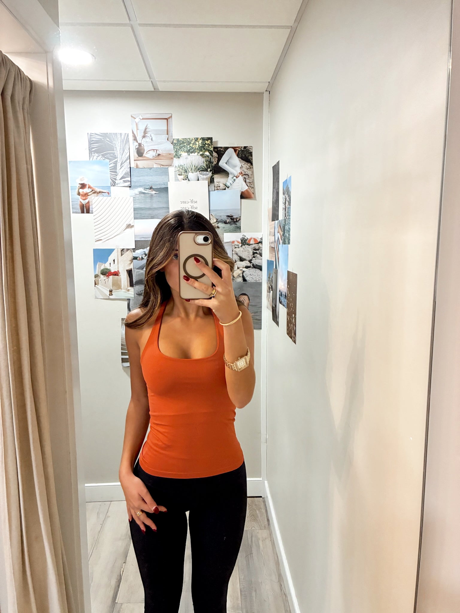 A new addition to your favorite seamless collection. This sleek tank is featured in a buttery soft fabrication with a U-neckline and skinny racerback silhouette.