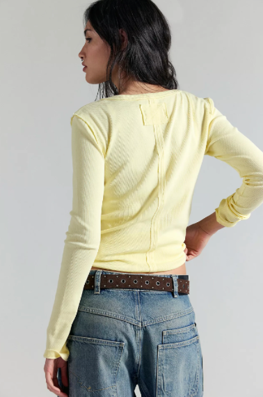 The long-sleeve you can wear with absolutely everything. This henley from our we the free collection features a soft cotton fabrication and slim-fitting silhouette with defined seams and button closures.