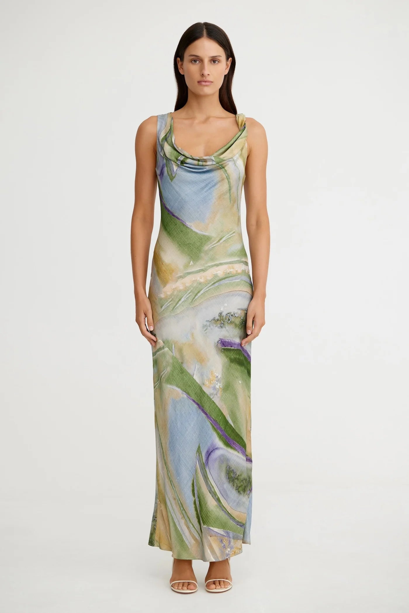 Designed with the event season in mind, the Bianca Maxi Dress in satin delivers a glamorous look with its shiny finish and soft texture. The bias cut design and cowl neckline, twisting into a chic left shoulder strap, ensure fluid movement and effortless elegance. Pair it with a heel for a party of a sandal for a more casual affair.