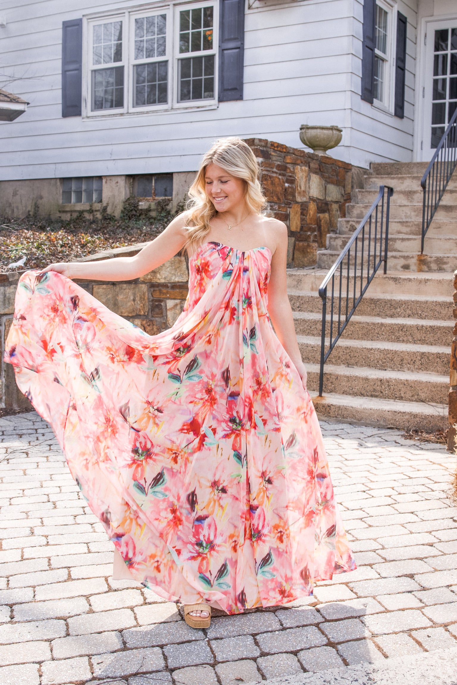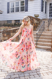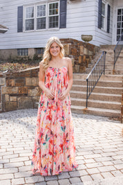 Brooke Chiffon Maxi Dress in Coral Multi