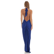 Gathered Back Halter BodyCon Maxi Dress in Royal Blue