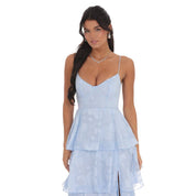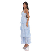 Floral Ruffle A-line Maxi Dress in Sky Blue: S