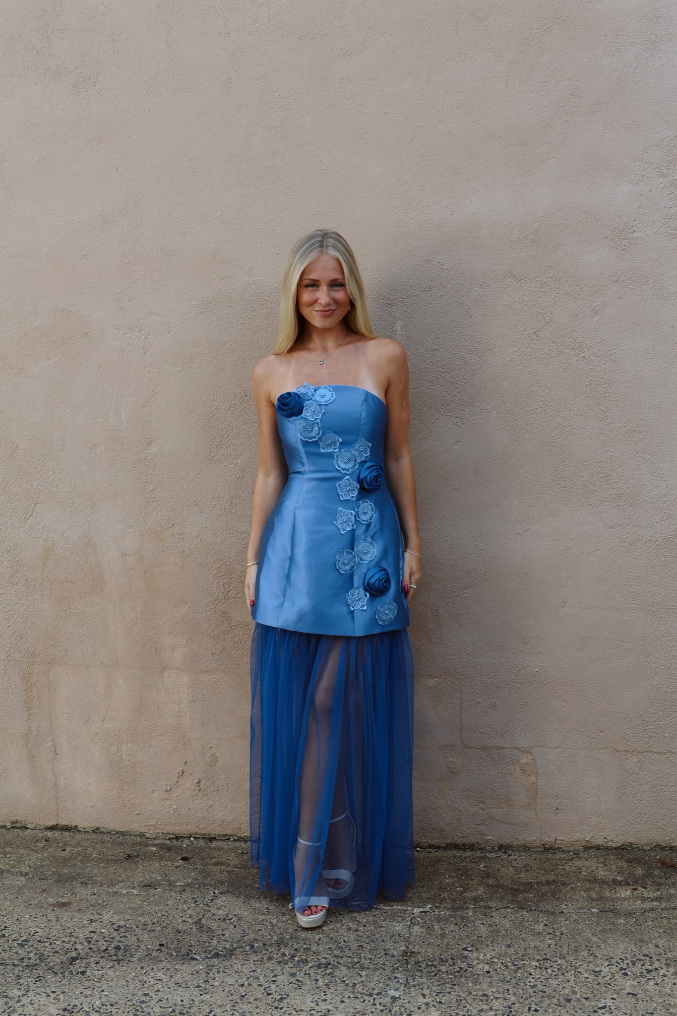 Oleander Strapless Maxi Dress In Cobalt by Elliatt