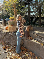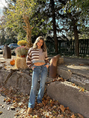 Long sleeve round neck striped cropped sweater