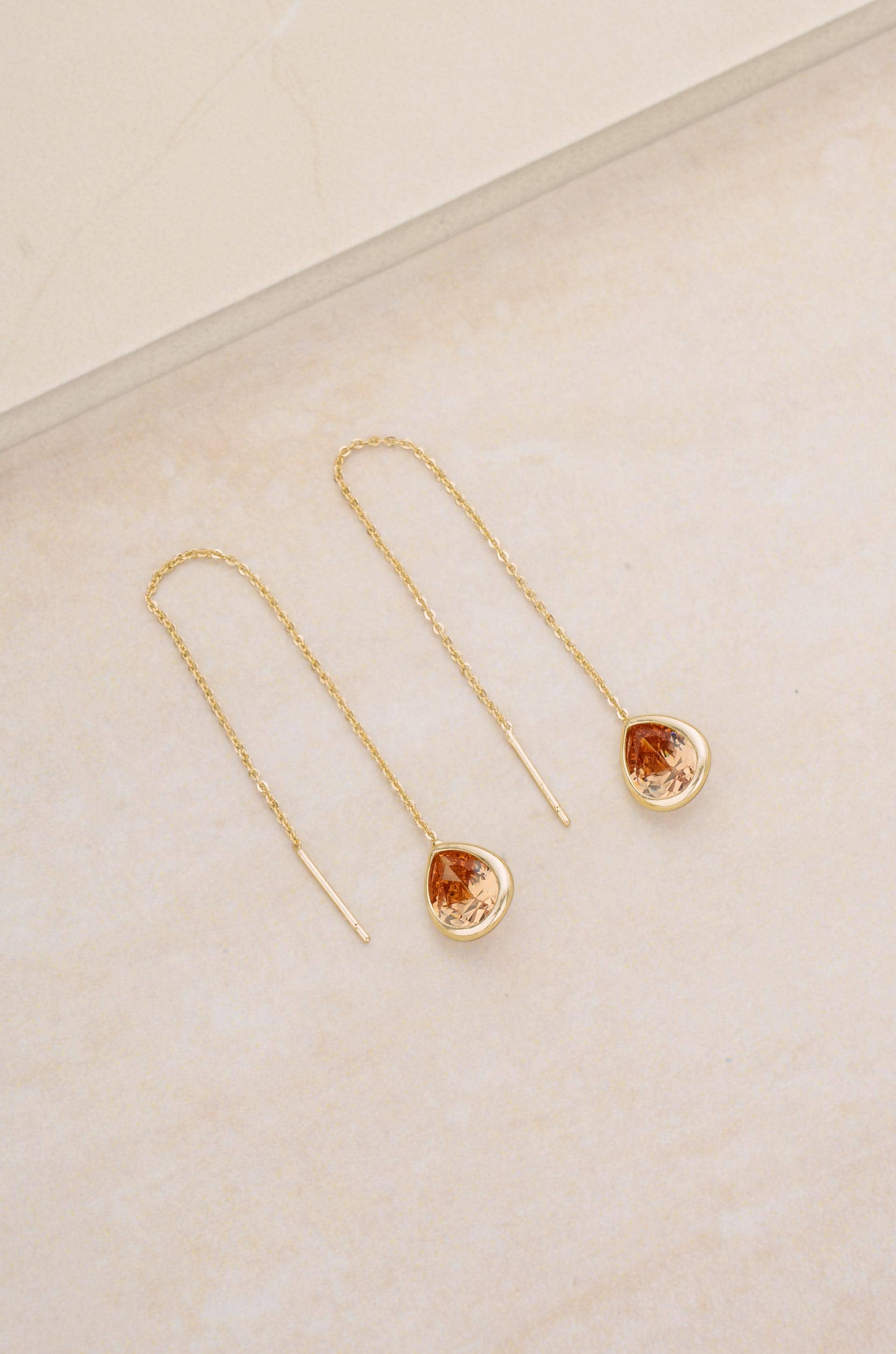 Barely There Chain and Crystal Dangle Earrings: Light Topaz Crystals with 18k Gold Plating