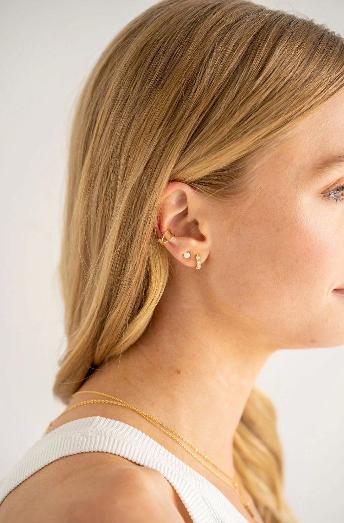 Introducing an illuminating opal in The Chroma Studs. These polychromatic stones were founded in the Southern Homeland adding the eccentric vibes the earring piece craved. The gold plated metal is embellished with a miniature stone highlighting its pearly features.Â