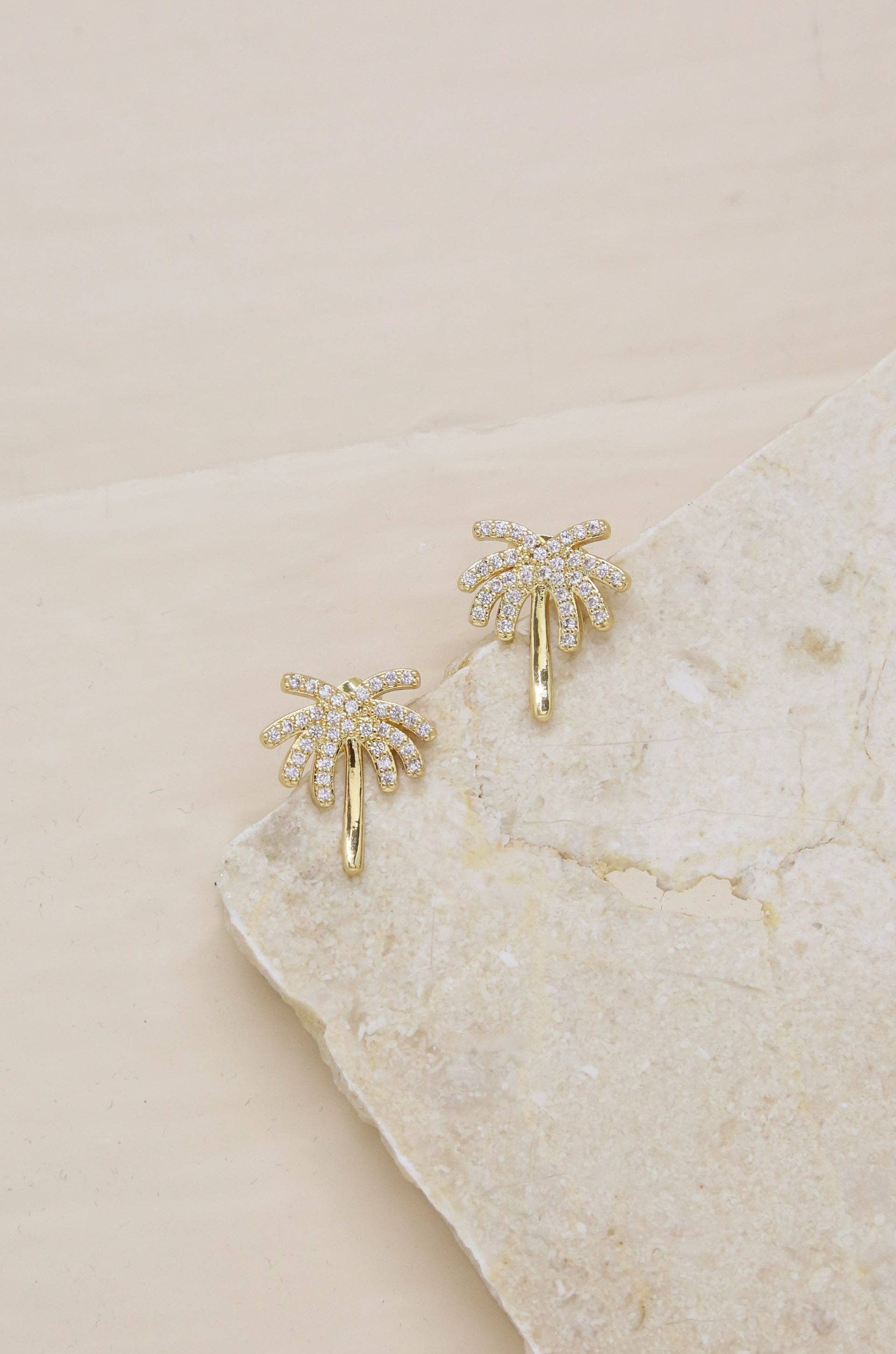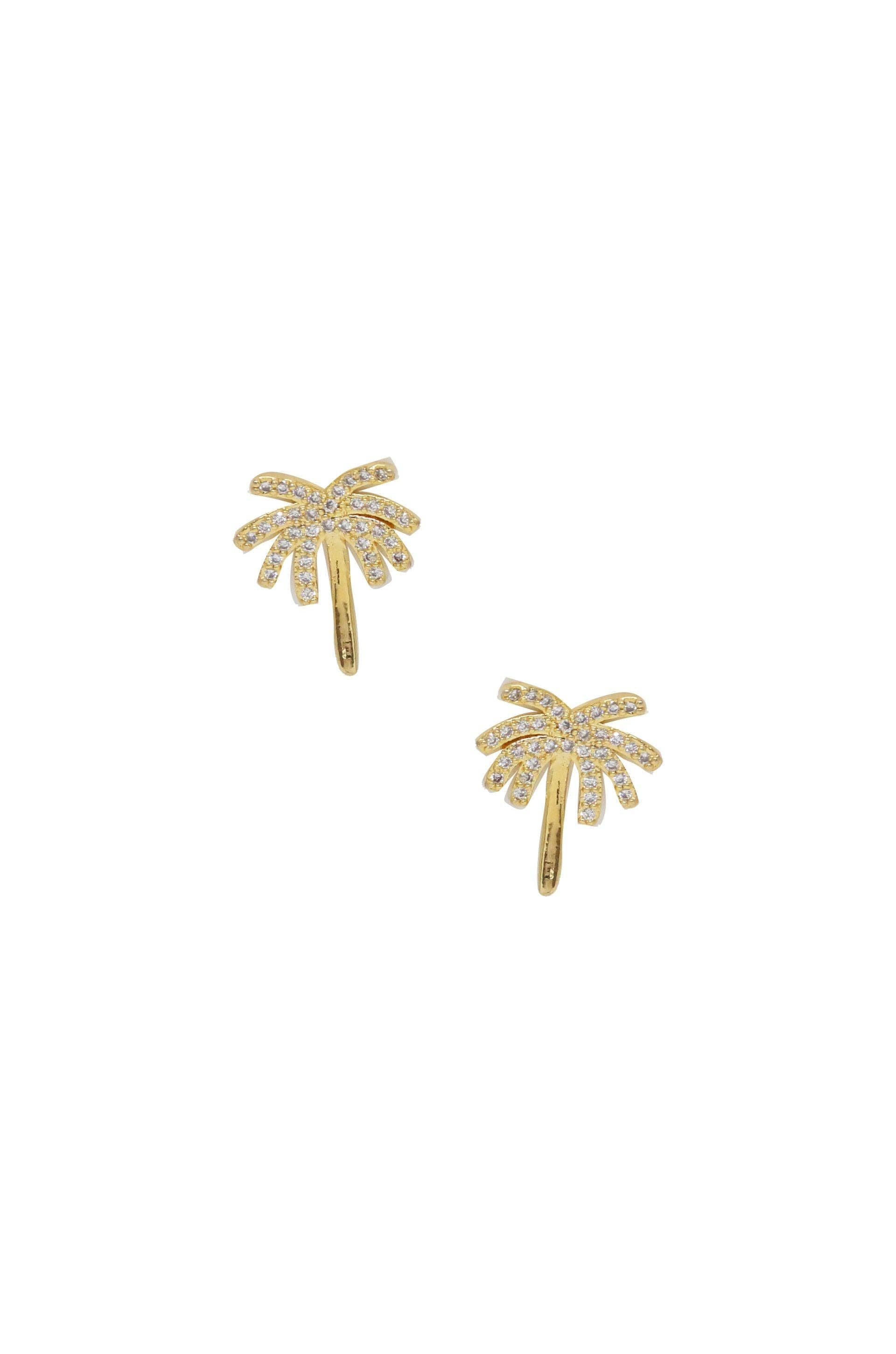 Palmasté 18k Gold Plated Stud Earrings: Clear Crystals