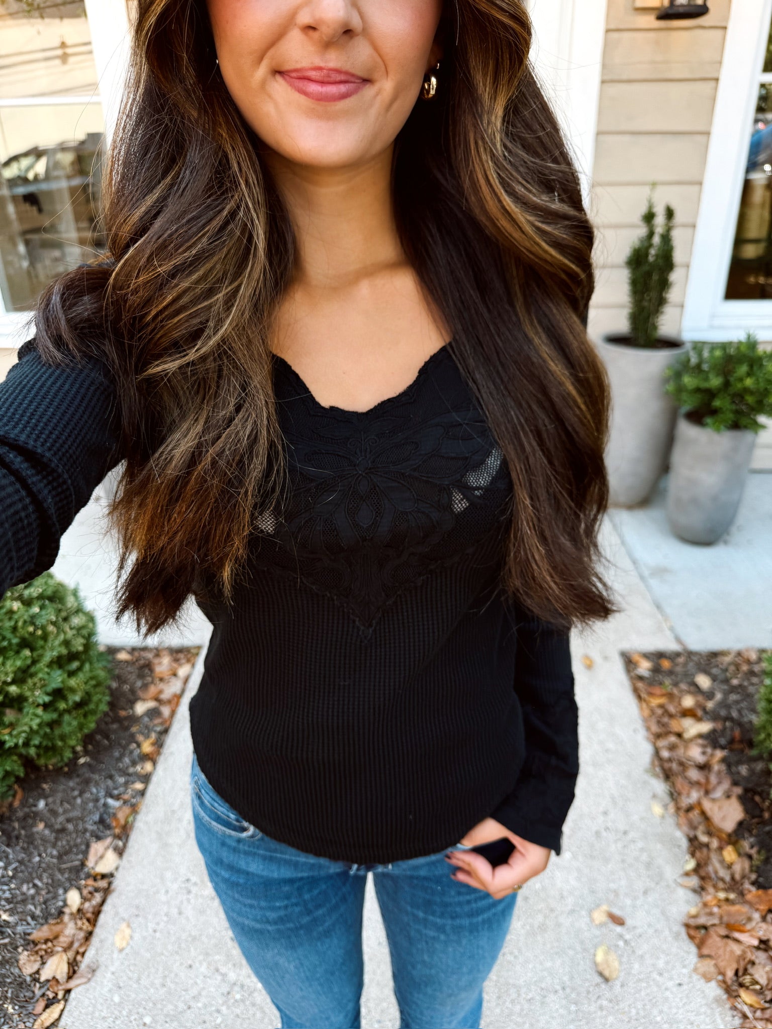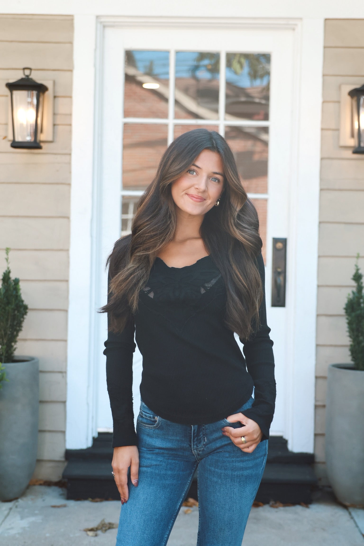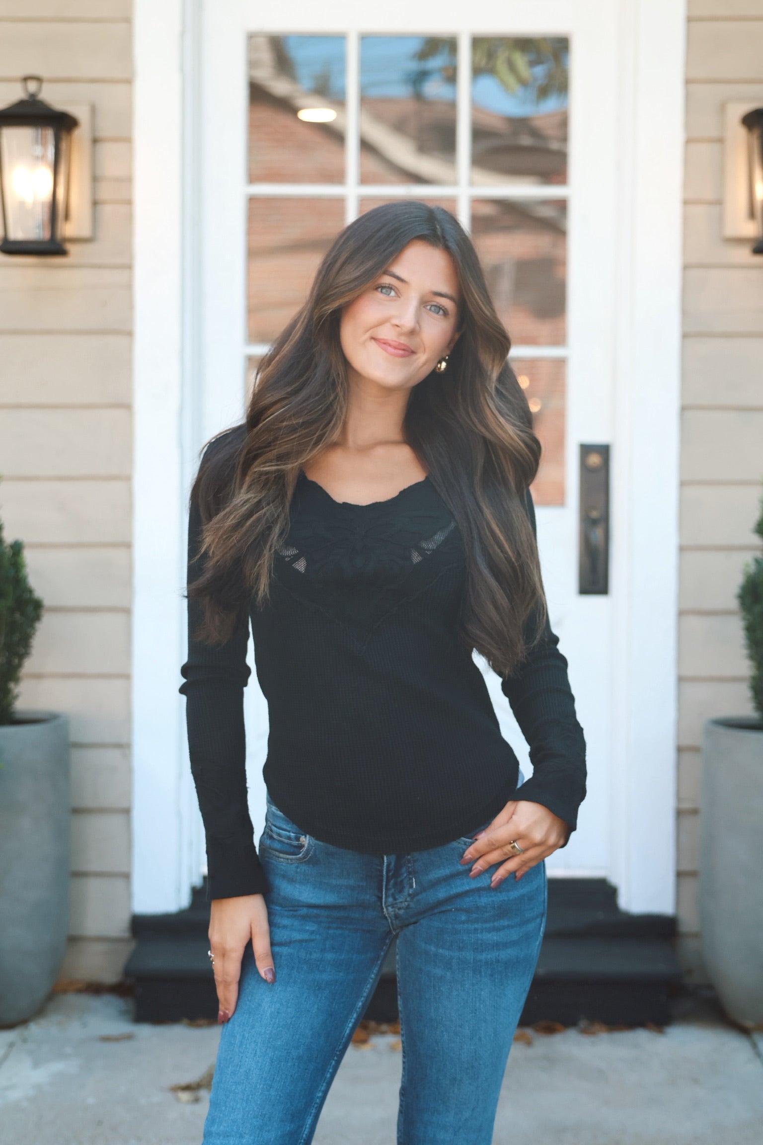 A need-now twist on an FP classic, this long-sleeve thermal features intricate embroidered mesh at the chest and cuffs for a signature, so-special look you can only find here.