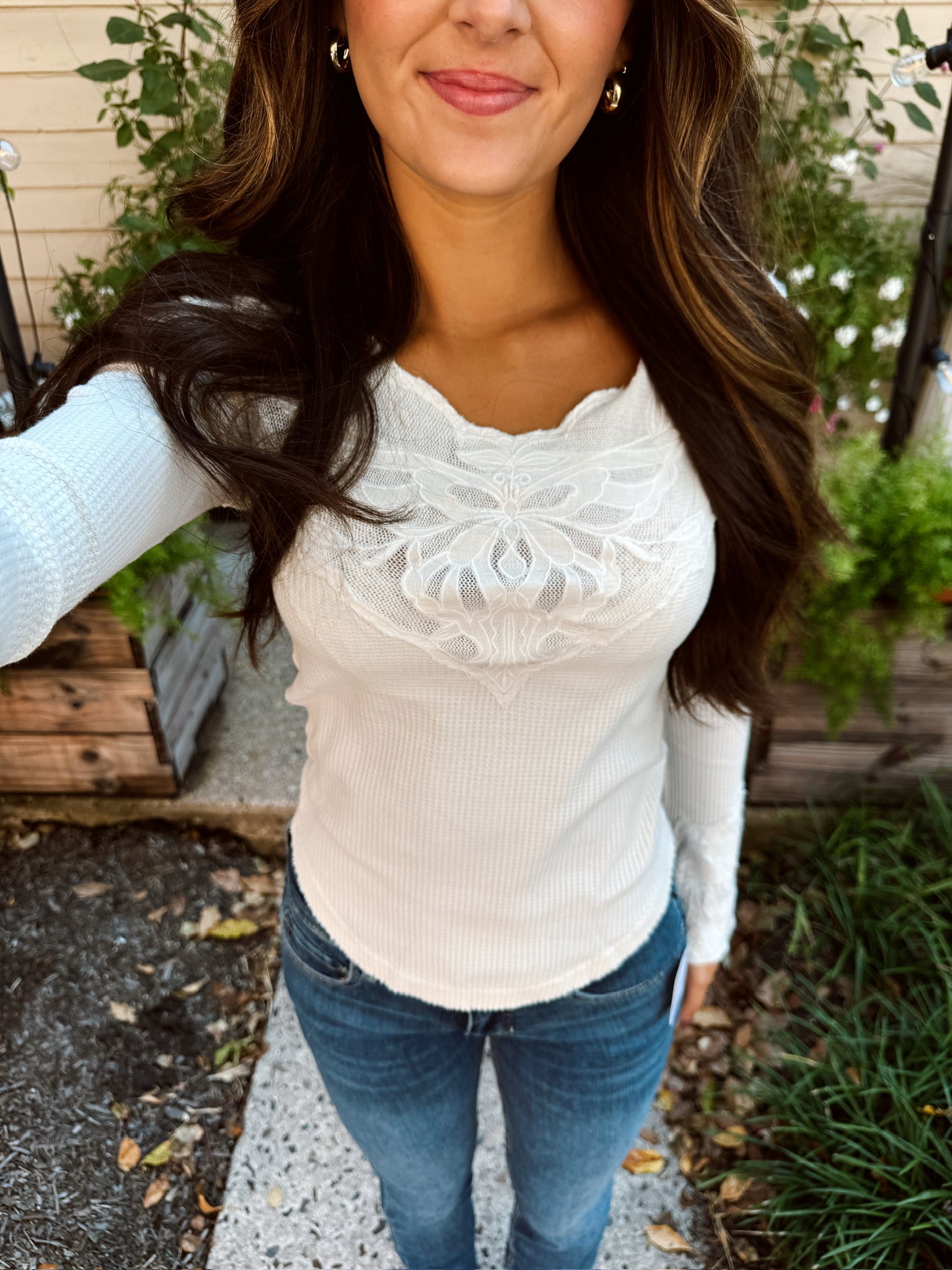 A need-now twist on an FP classic, this long-sleeve thermal features intricate embroidered mesh at the chest and cuffs for a signature, so-special look you can only find here.