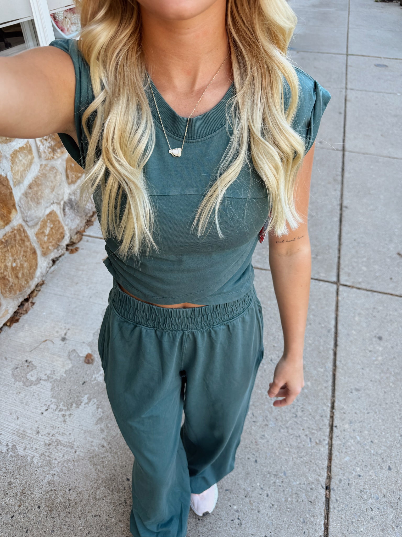 Effortlessly comfy, this set is easy to throw on before or after workouts, featuring a super soft fabrication and perfectly lived-in look.