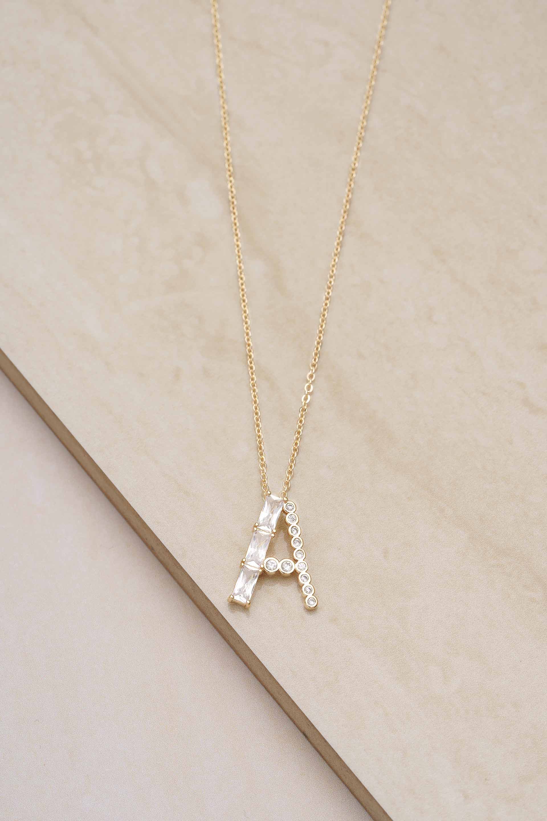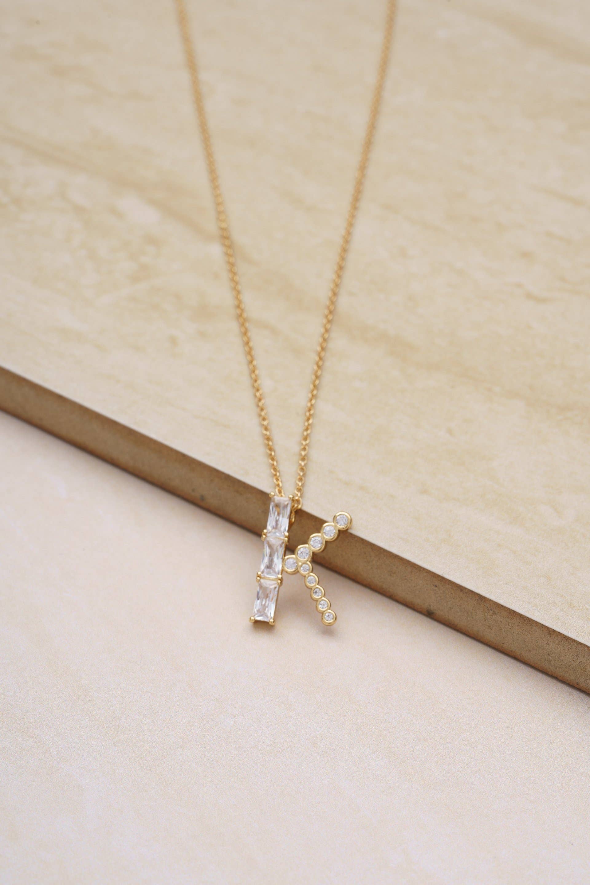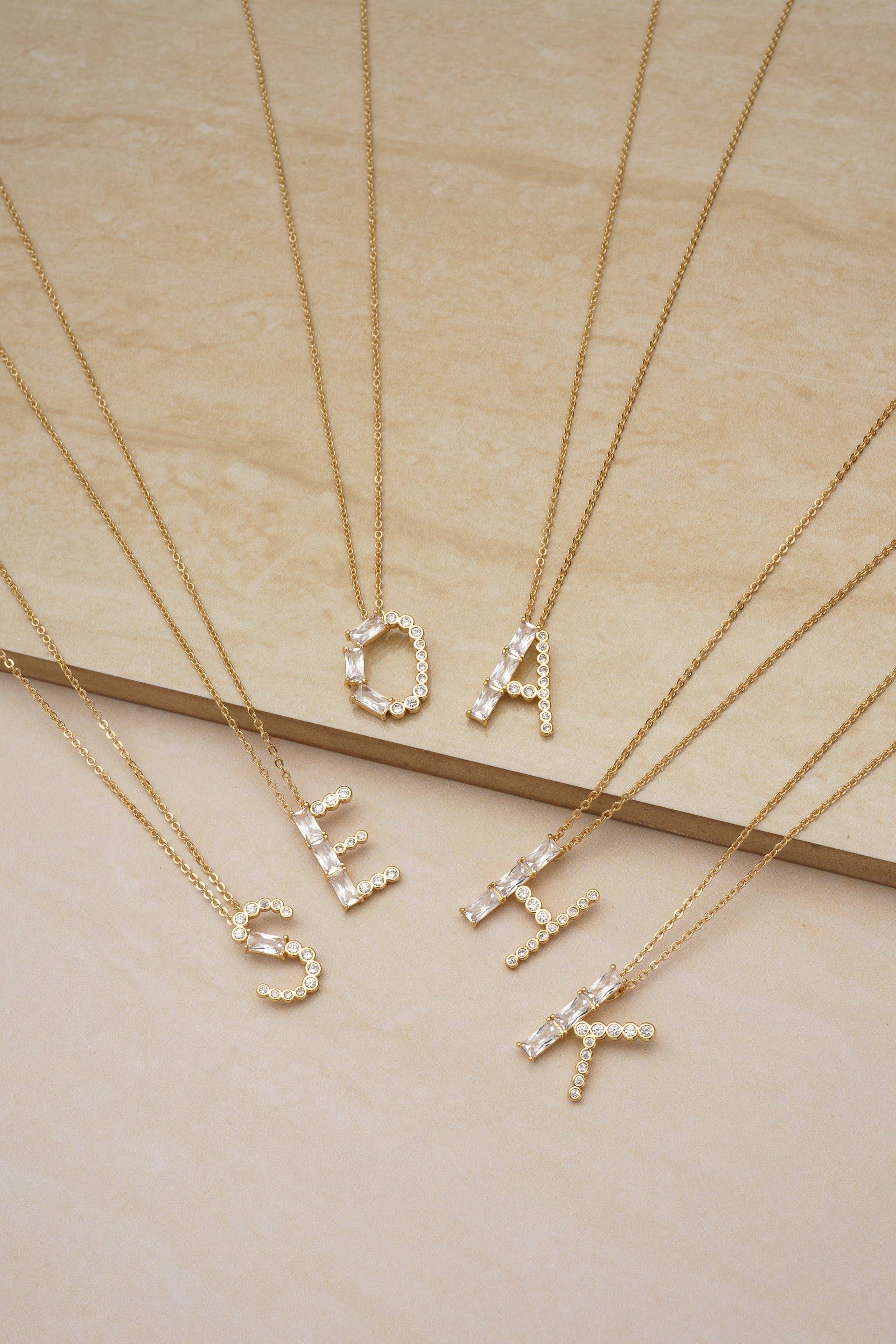 Mixed Crystal Initial 18k Gold Plated Necklace