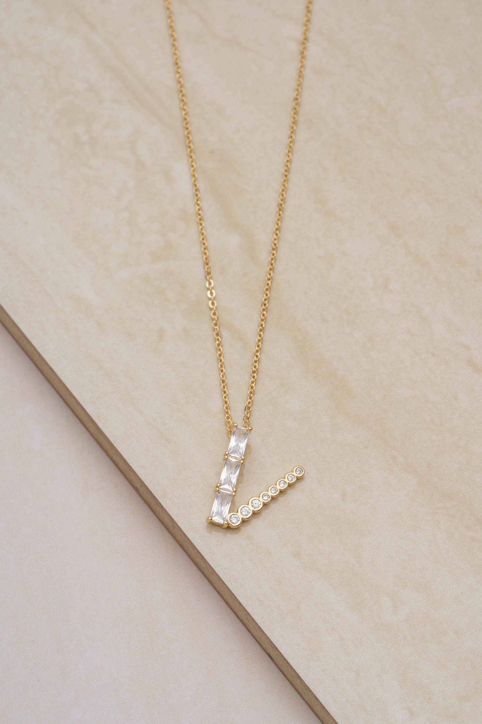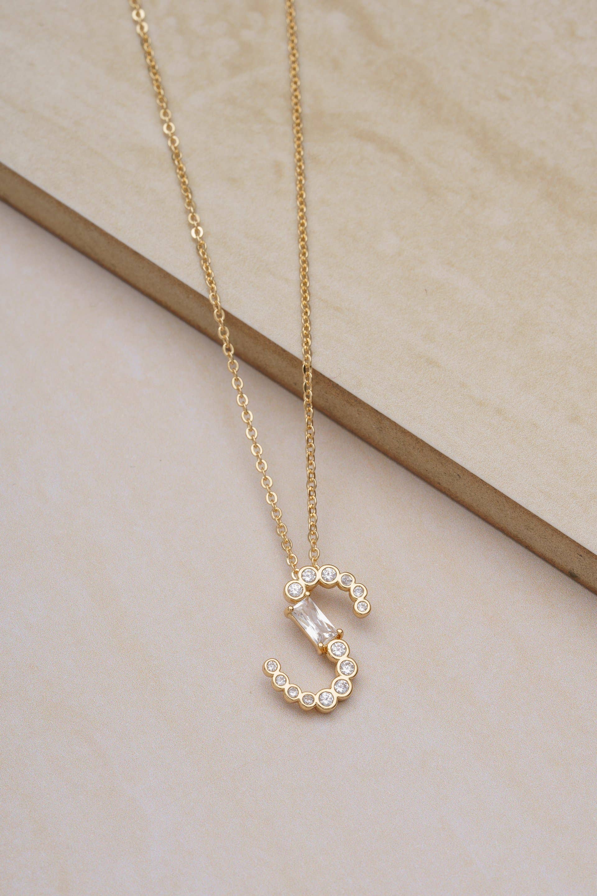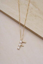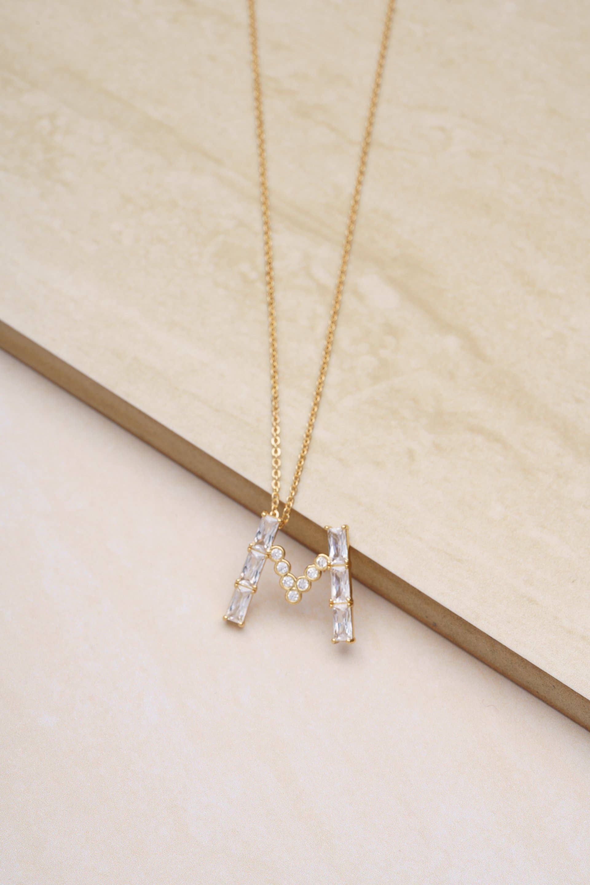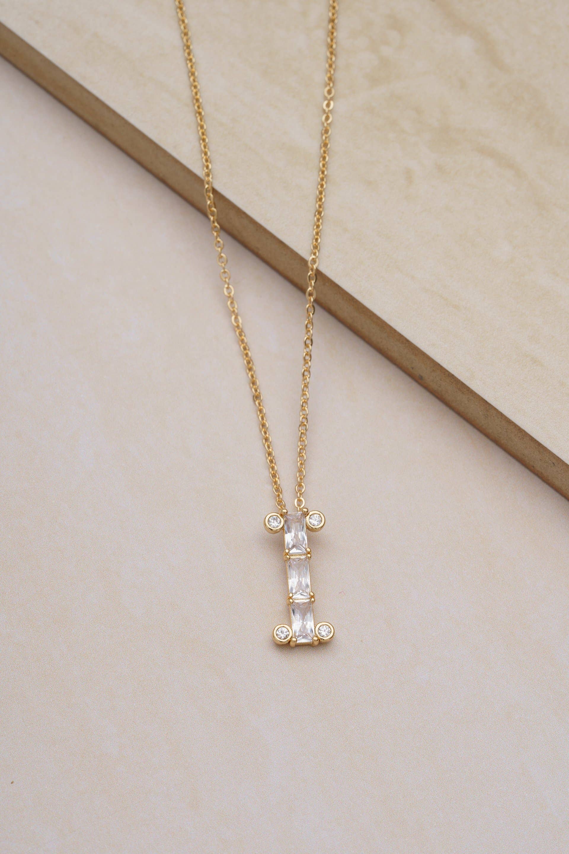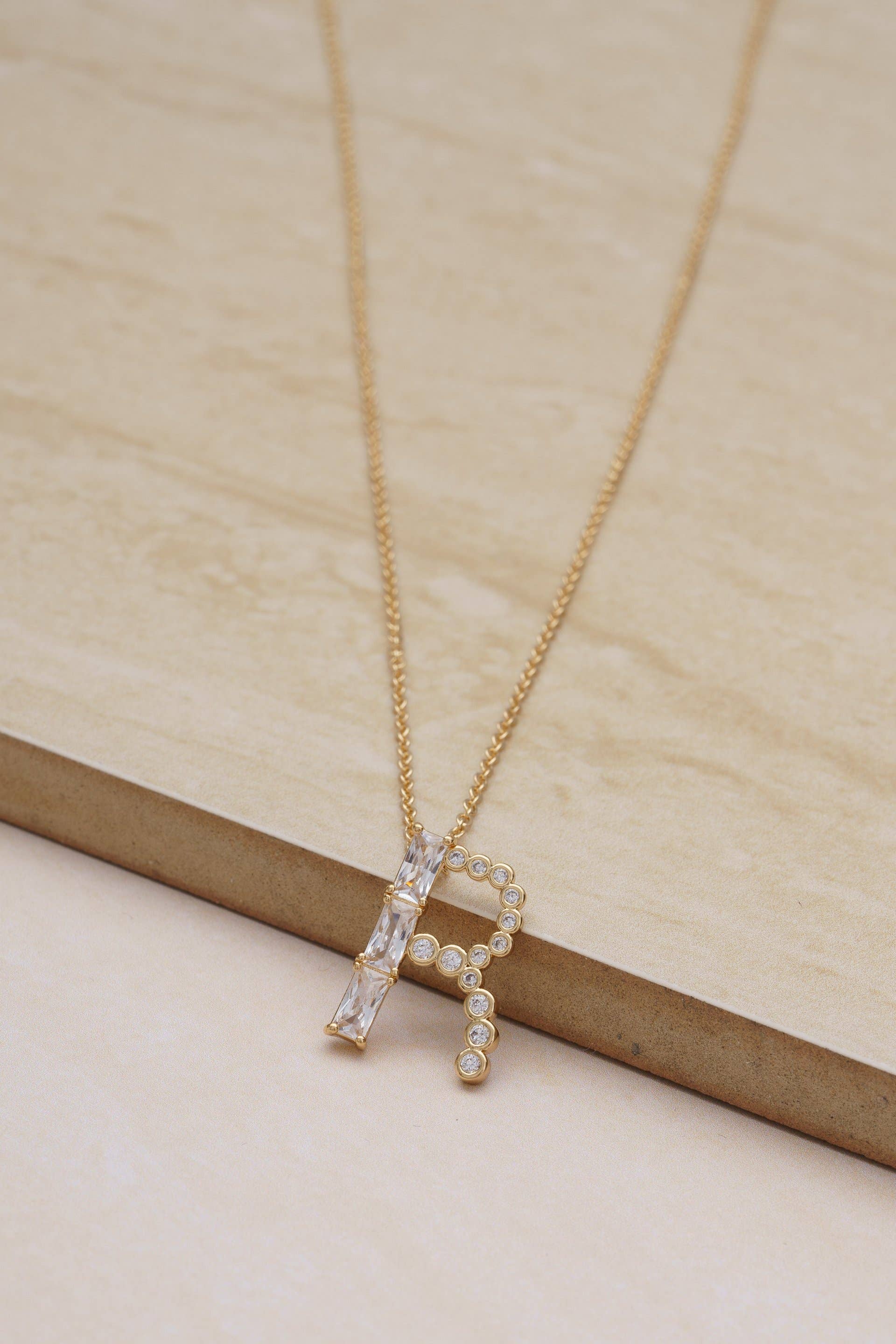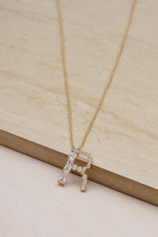 • 18k Gold Plated. • Brass + Steel. • CZ. • 16.5 Inches + 5 Inch extender. • Initial approx. 17.5mm long.