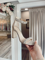 Make dressy looks shine with clustered rhinestones in the graceful strappy design of the Odessa evening sandals.