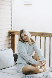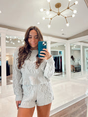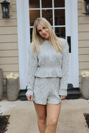 Cropped peplum sweater with matching loose fitting sweater shorts. Sold as a set - so cozy and cute for the holidays!!