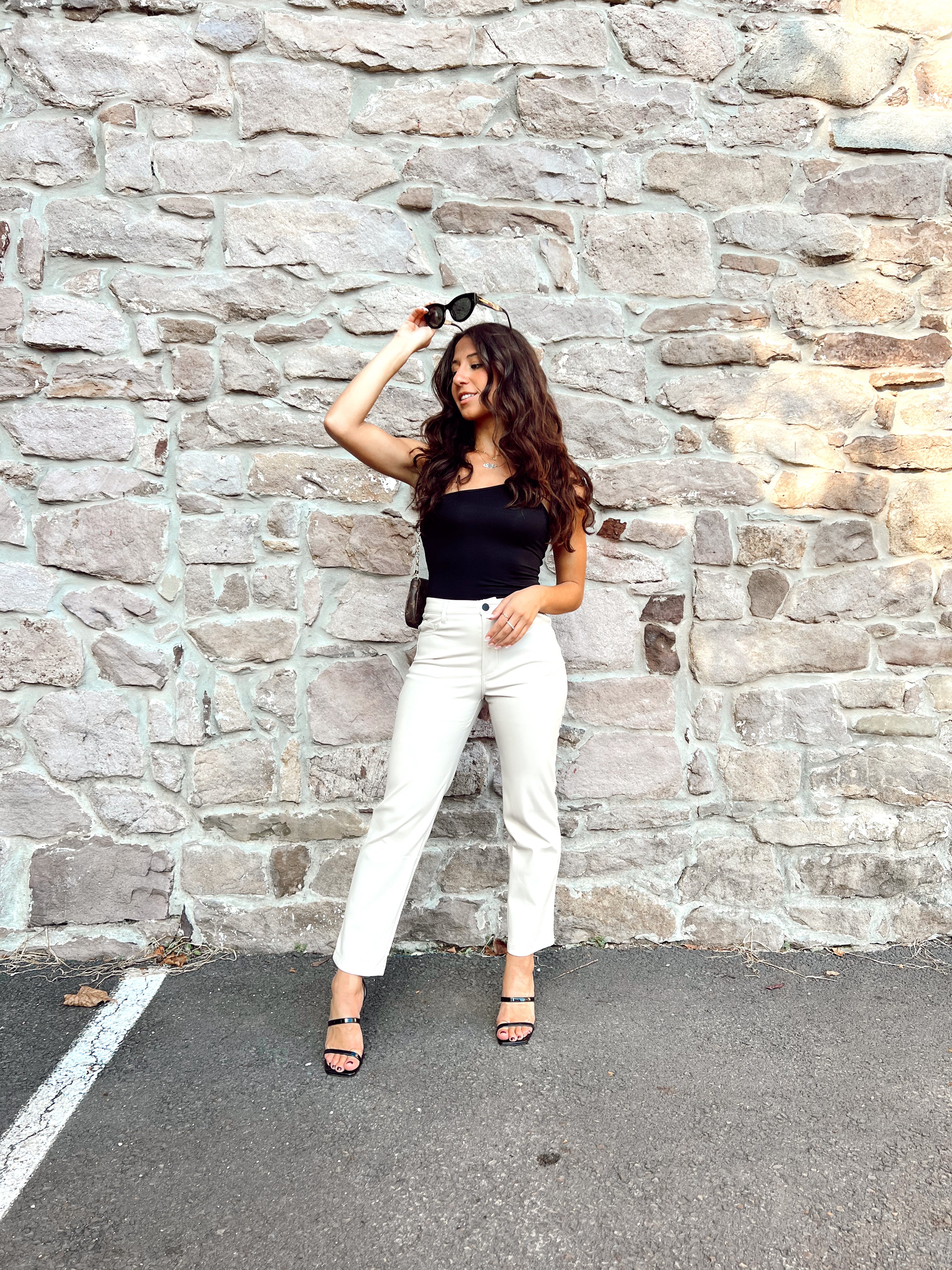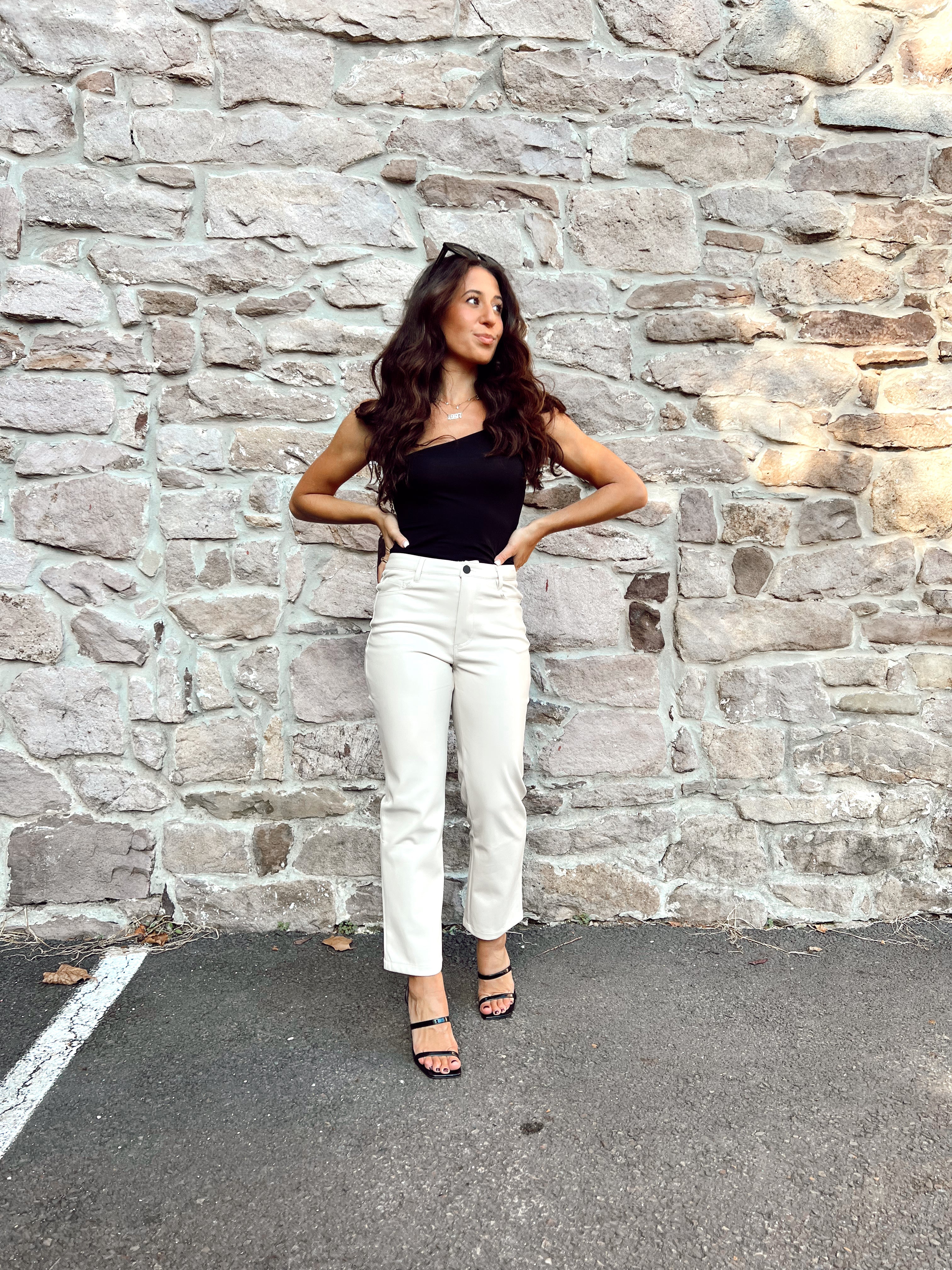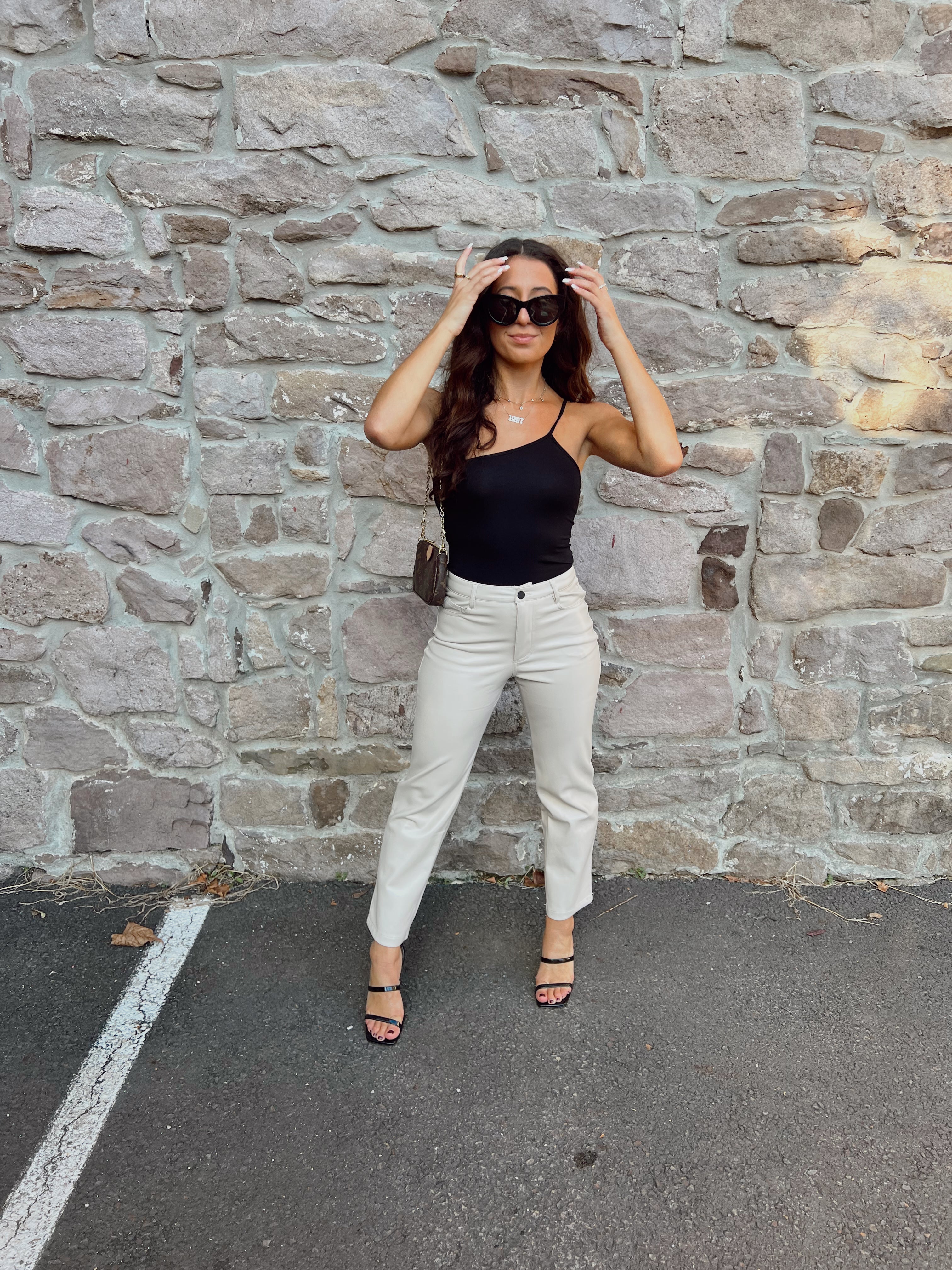 Faux leather straight leg pants, Fabric Content: 45% PU, 55% Polyester