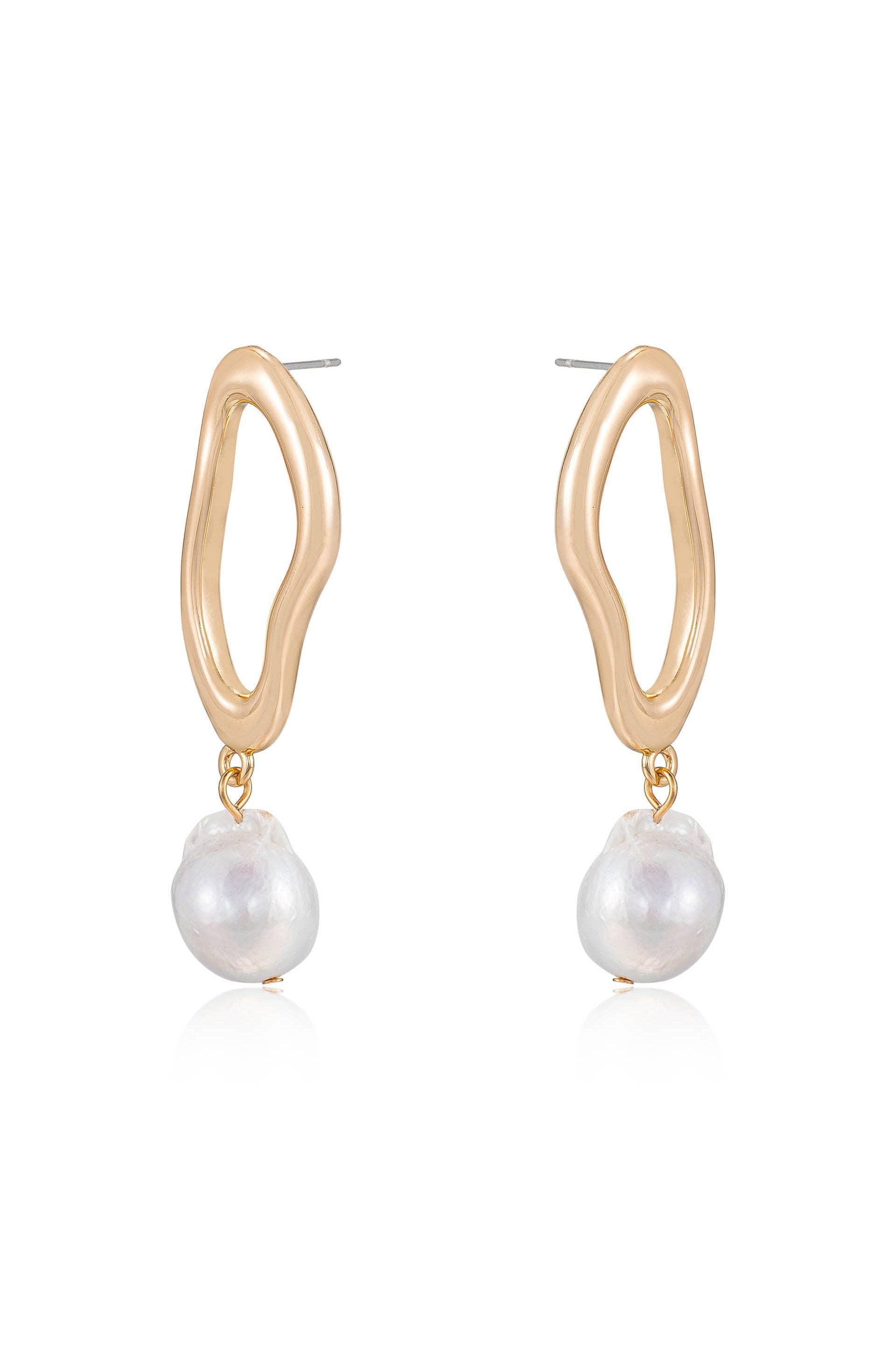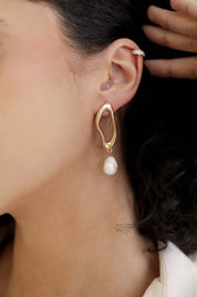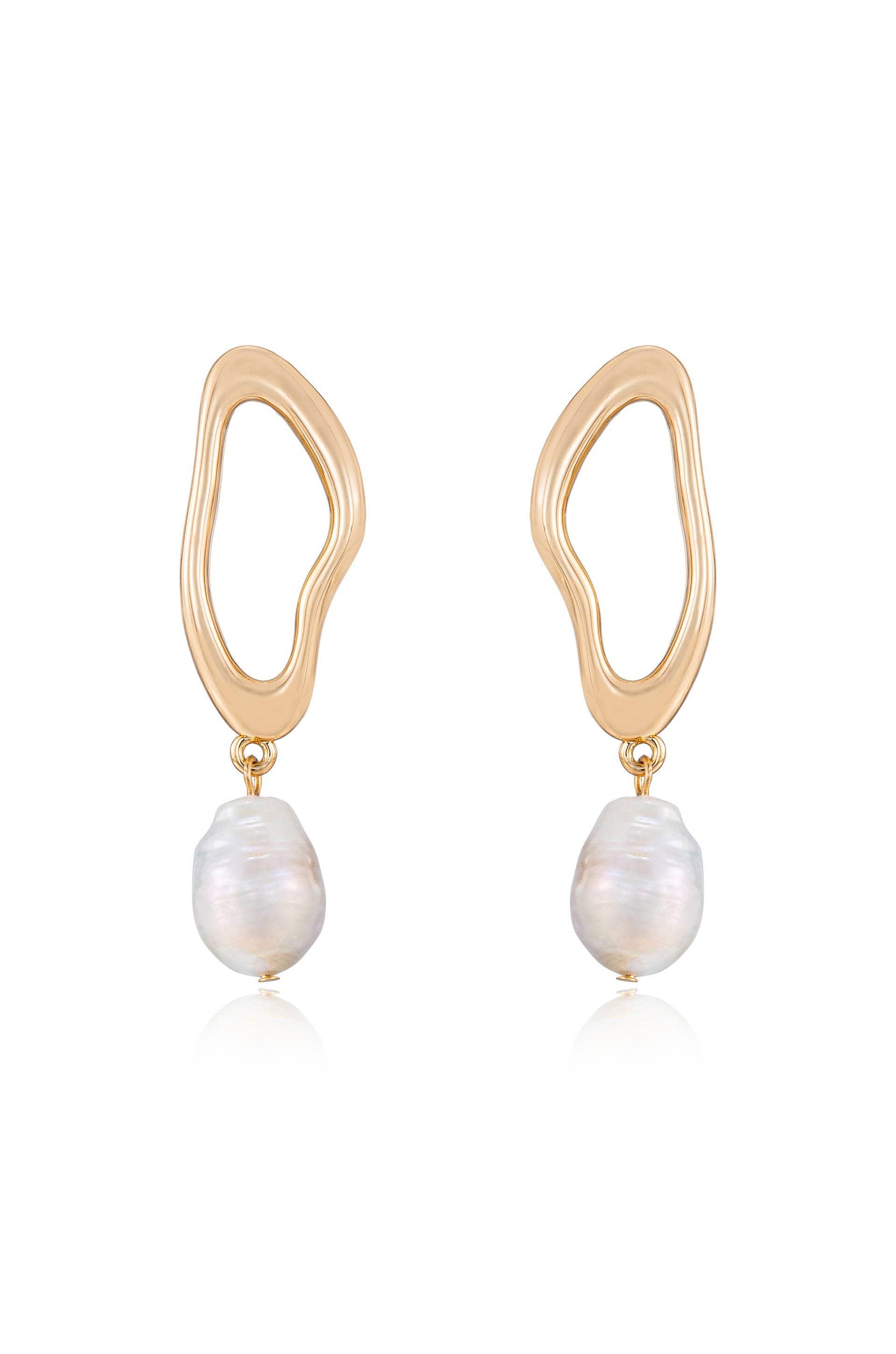 Open Circle Freshwater Pearl Earrings: White Pearl with 18k Gold Plating