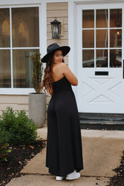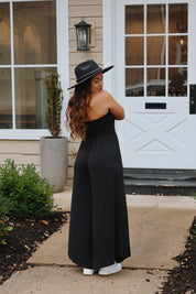 Strapless knit jumpsuit with wide leg. The SOFTEST material and OMG it's almost too comfortable!