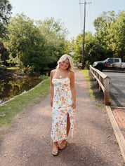 Cotton midi dress with watercolor print design.