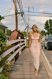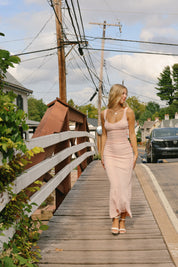 Stunning in this asymetrical hem maxi dress that features a popcorn scrunch material and mesh mid section.