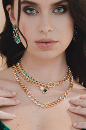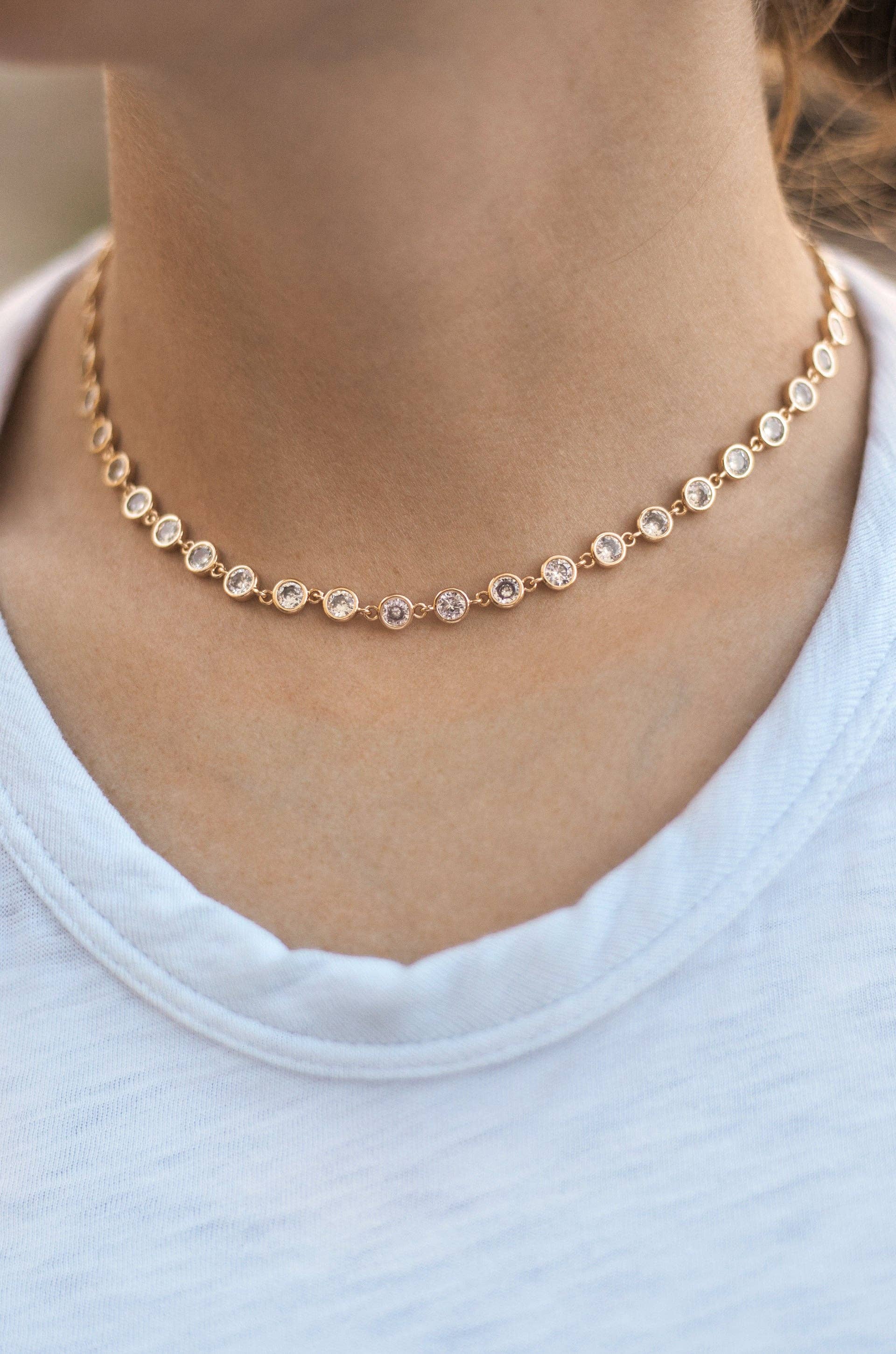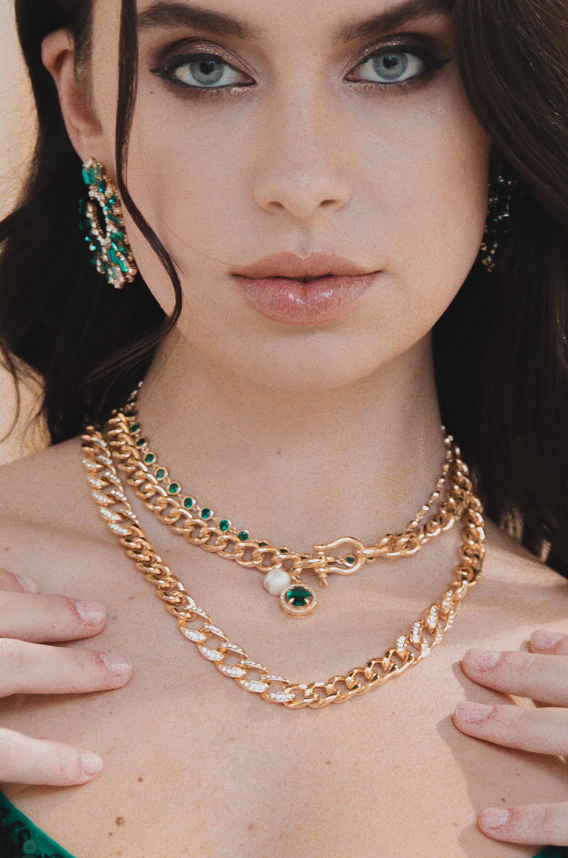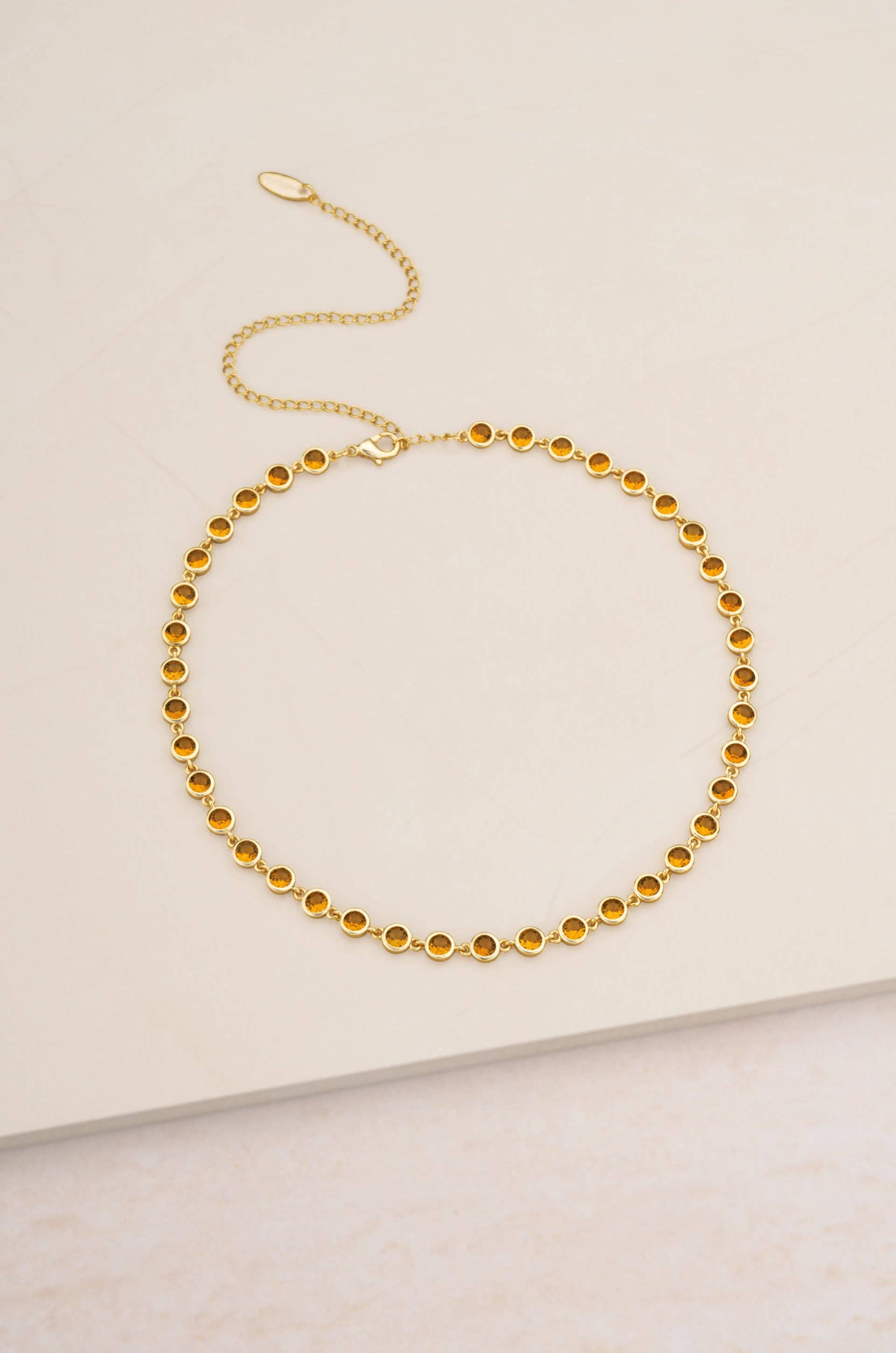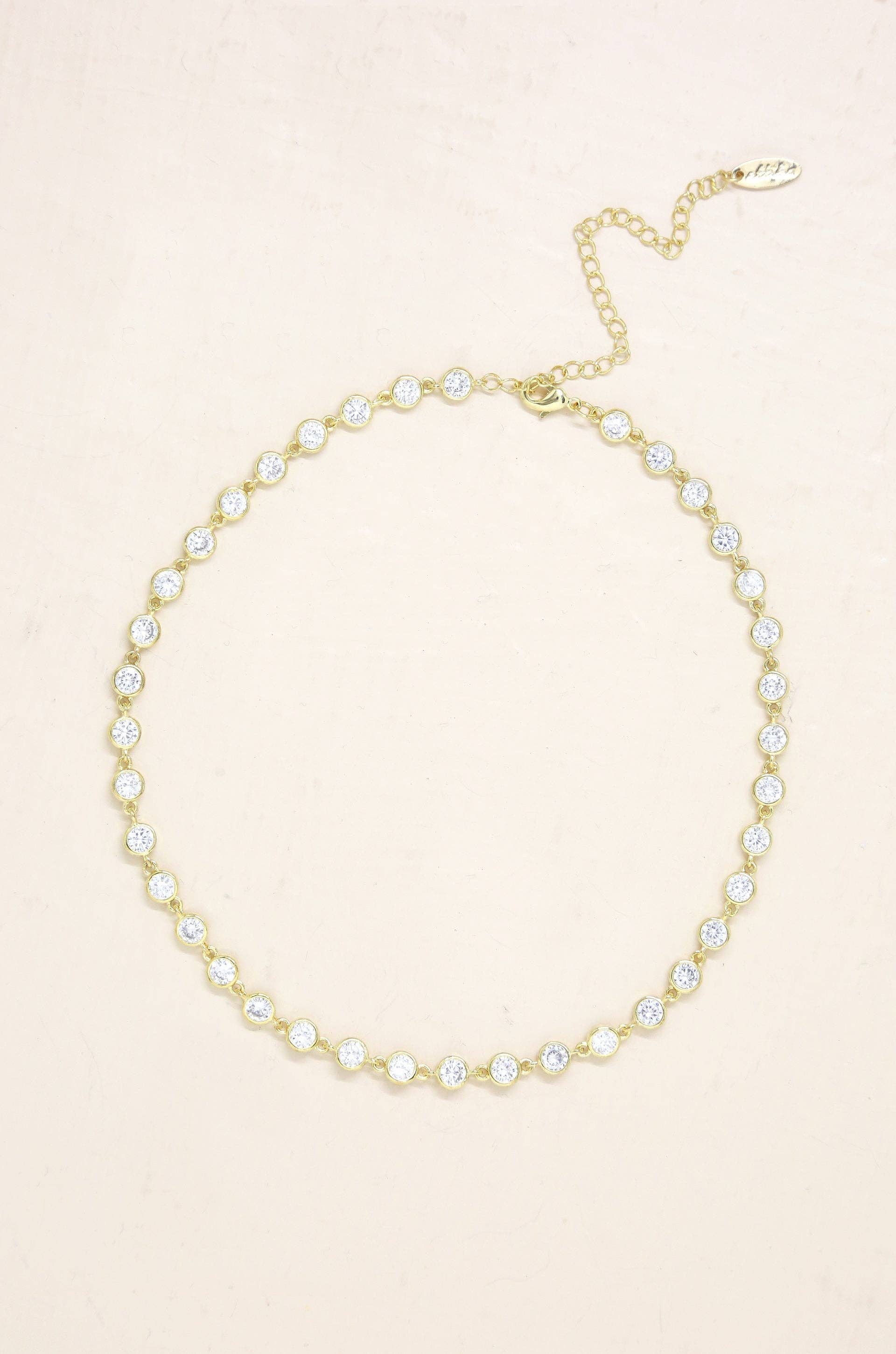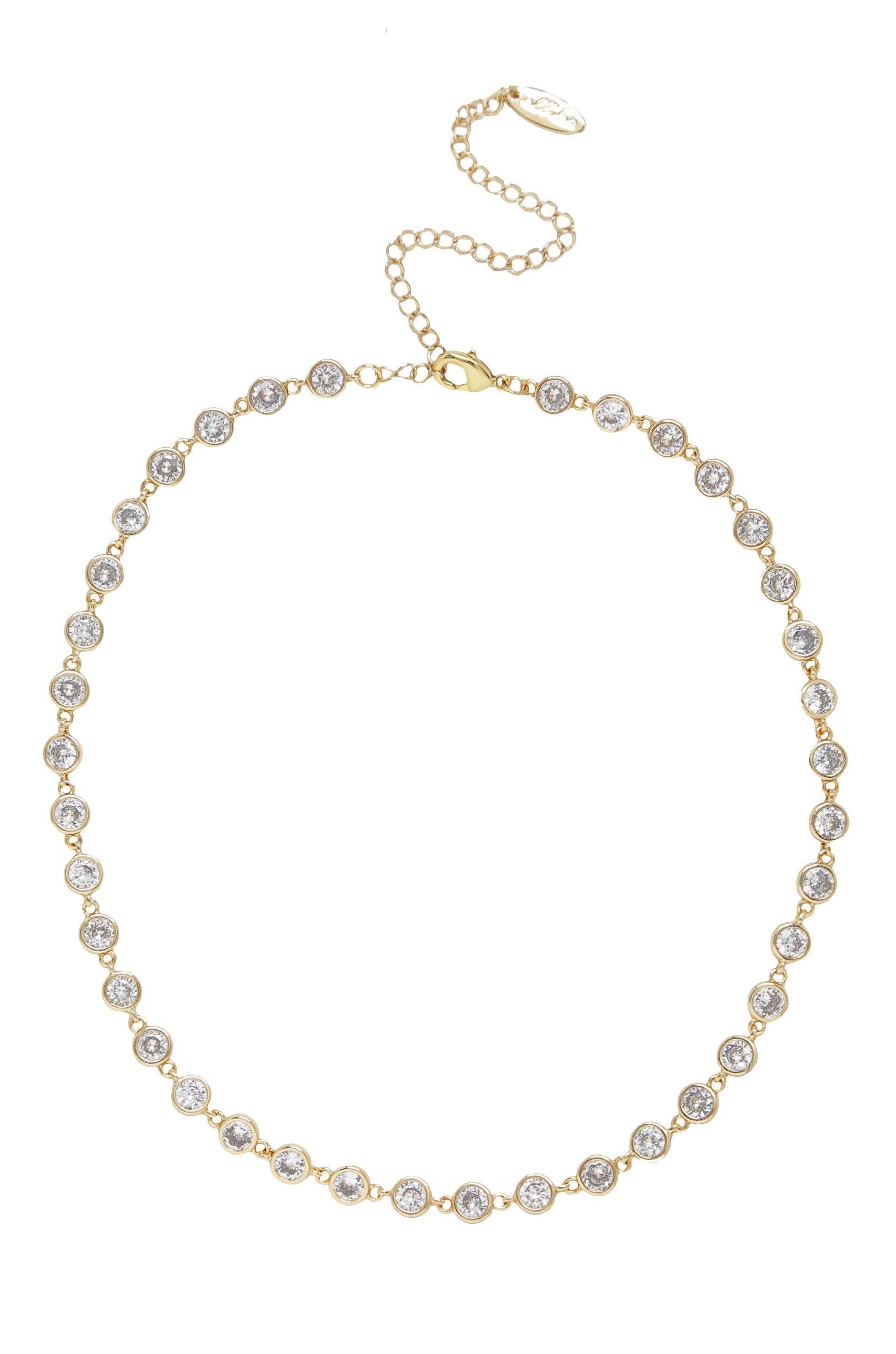 Crystal Disc and 18k Gold Plated Link Necklace: Clear Crystals / One Size