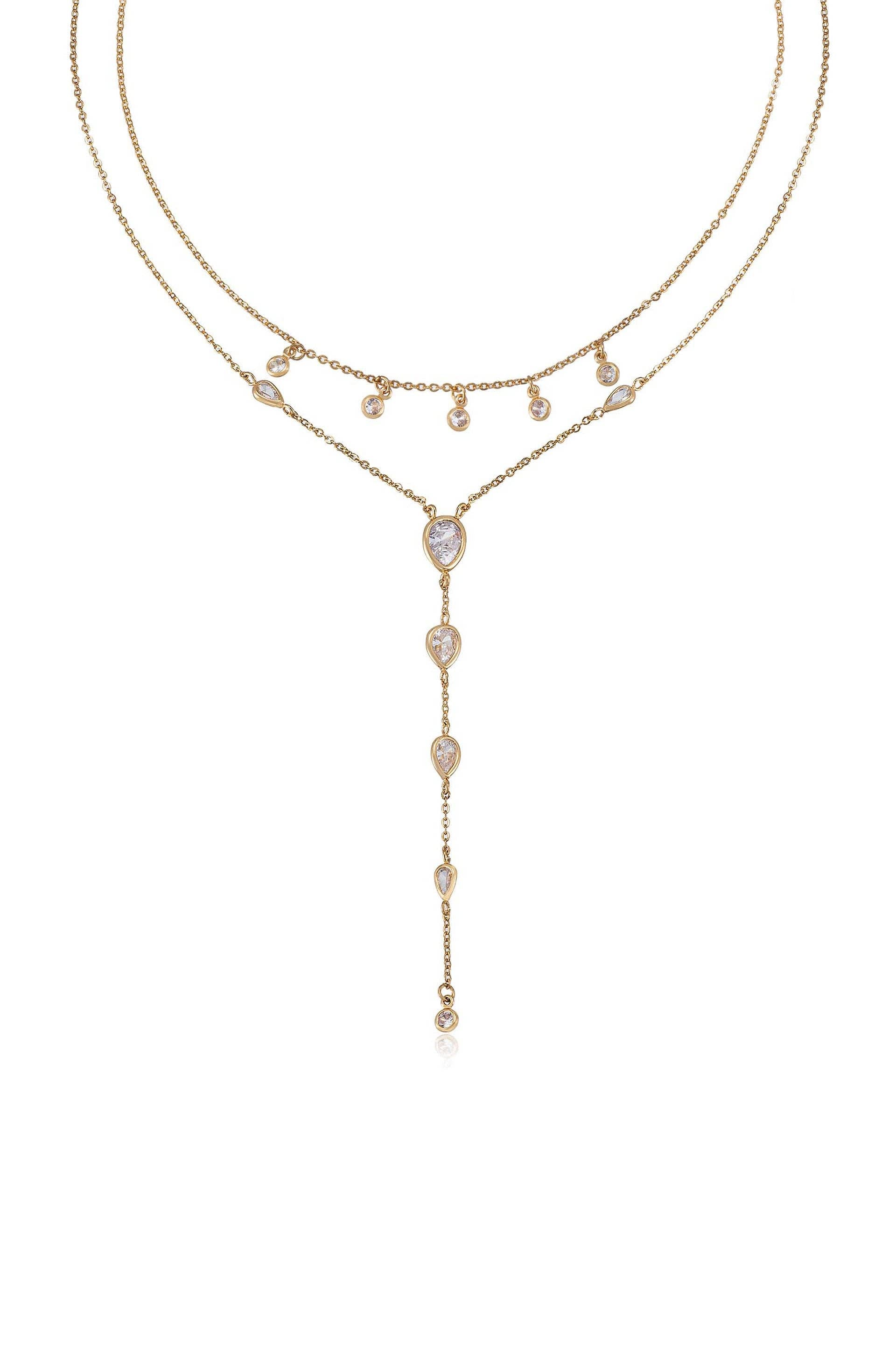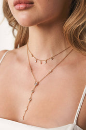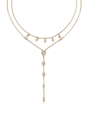 Draped in Bezel Crystal Lariat Necklace Set: Clear Crystals / One Size