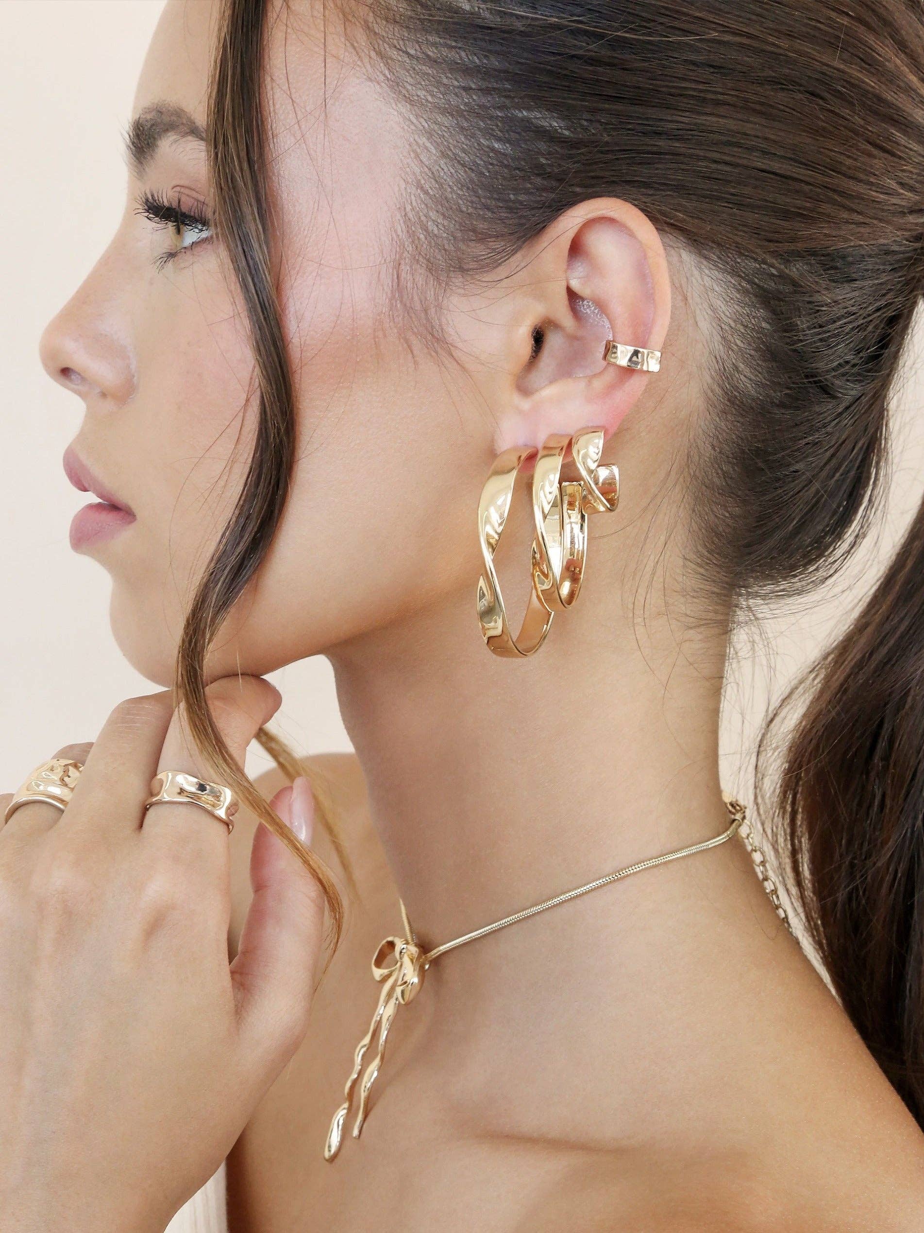 Heirloom Twist Medium Hoops: 18k Gold Plated / One Size