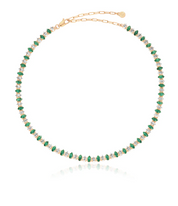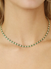 The Emerald Marquise Necklace showcases stunning marquise-cut emerald crystals set in 18k gold plating, offering a delicate yet eye-catching design. This timeless piece adds a vibrant touch of green to your favorite look.