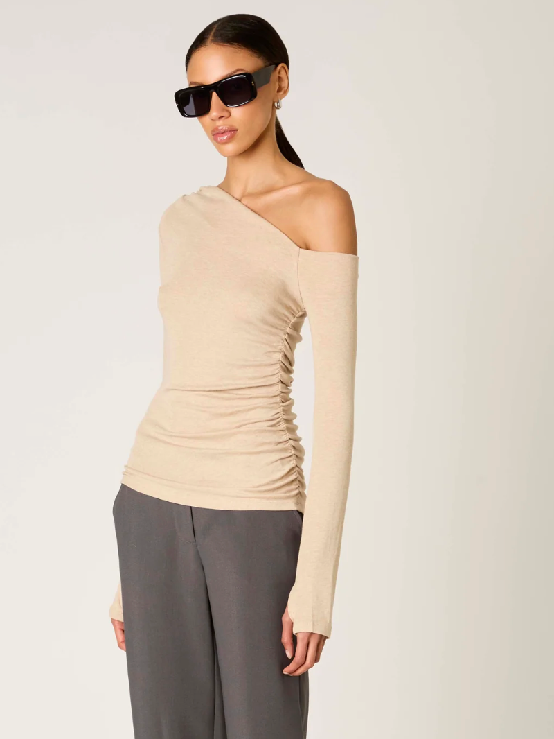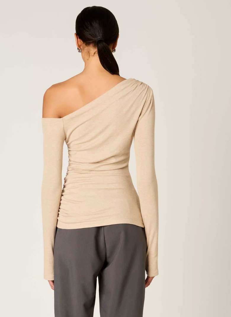 Knit off the shoulder fitted long-sleeved top. Unlined.