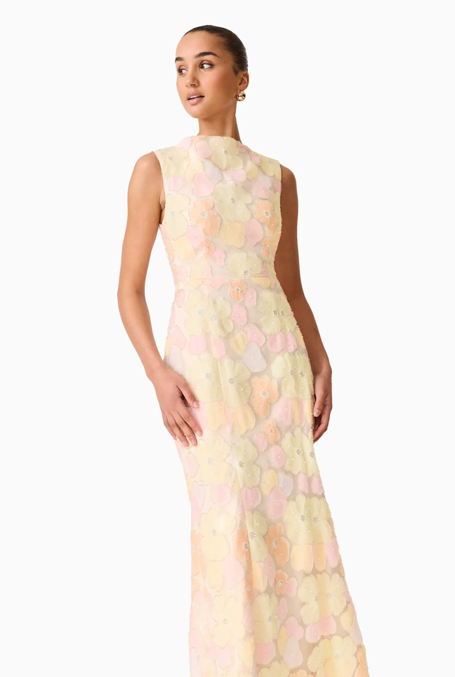 Zaria Sleevless Gown in Yellow Floral | Elliatt