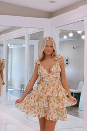 Eleanor Mini Dress Yellow/Orange Pattern