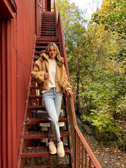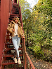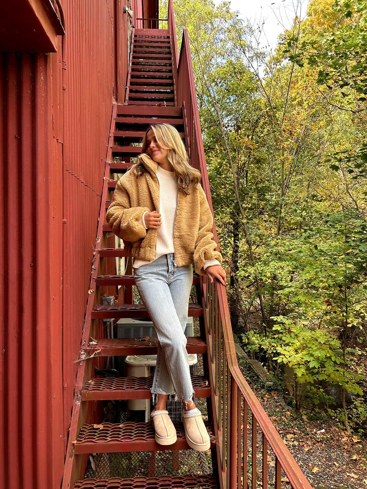 So fun and fuzzy in a forever classic, zip-up design, this staple jacket features a classic collar, dropped shoulders, and elasticated bottom hem for added shape.