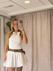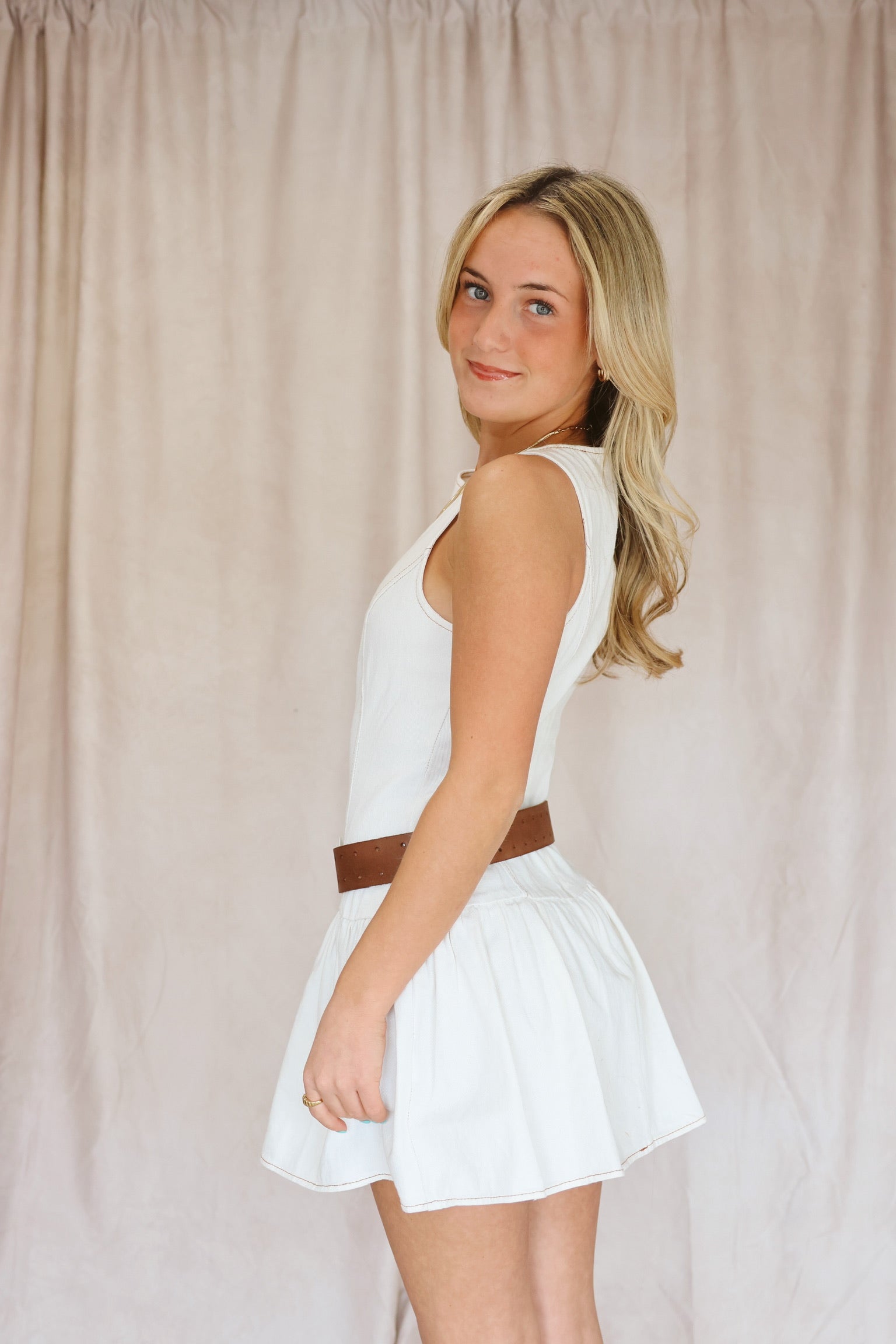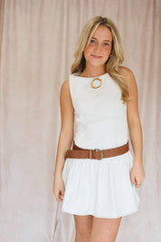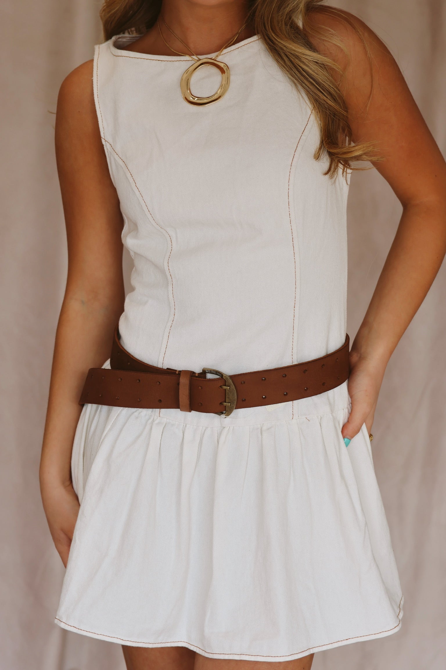 Cream Denim Drop Waist Mini