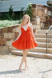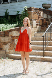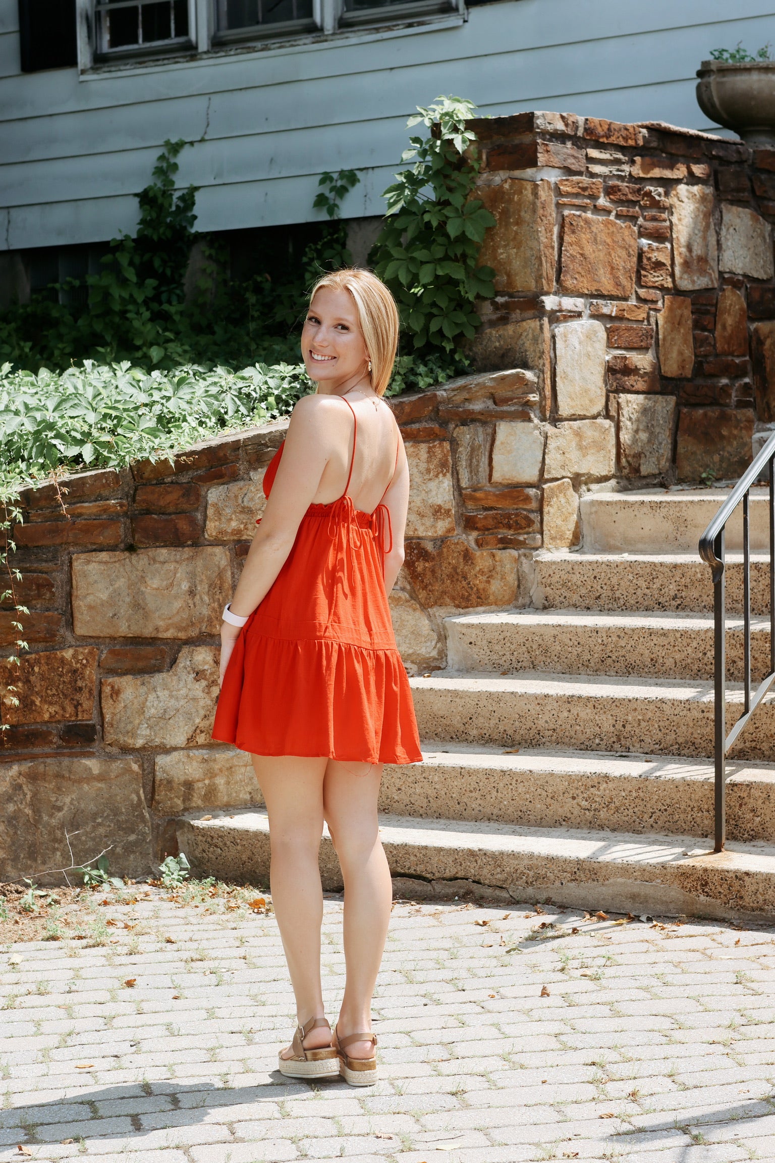 Linen babydoll dress with tie straps and adjustable waist. Also featuring a tired layer on the bottom.