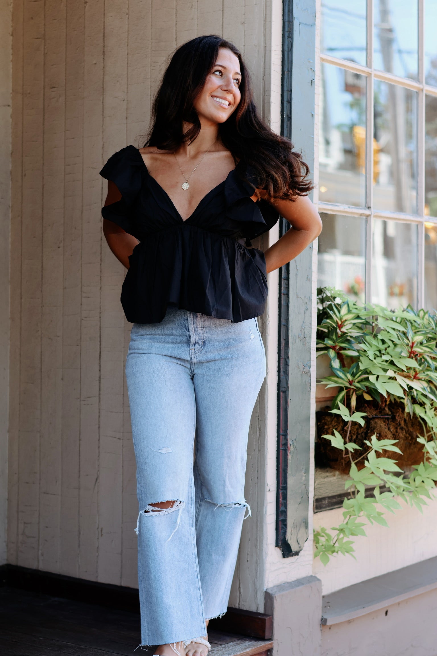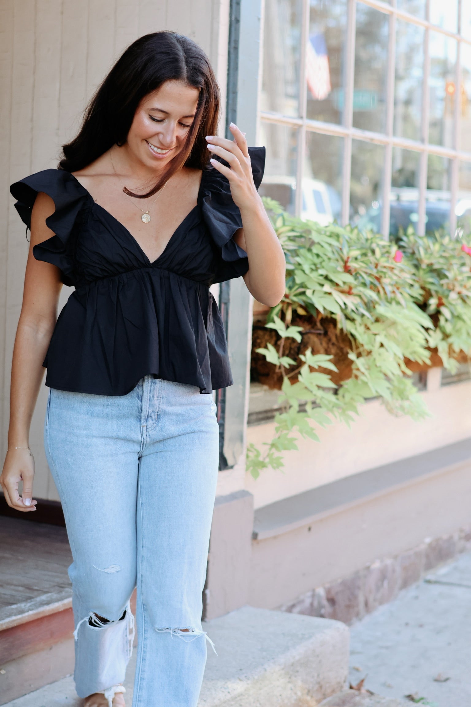 Tie back ruffle sleeve babydoll top - the best new addition to your closet!