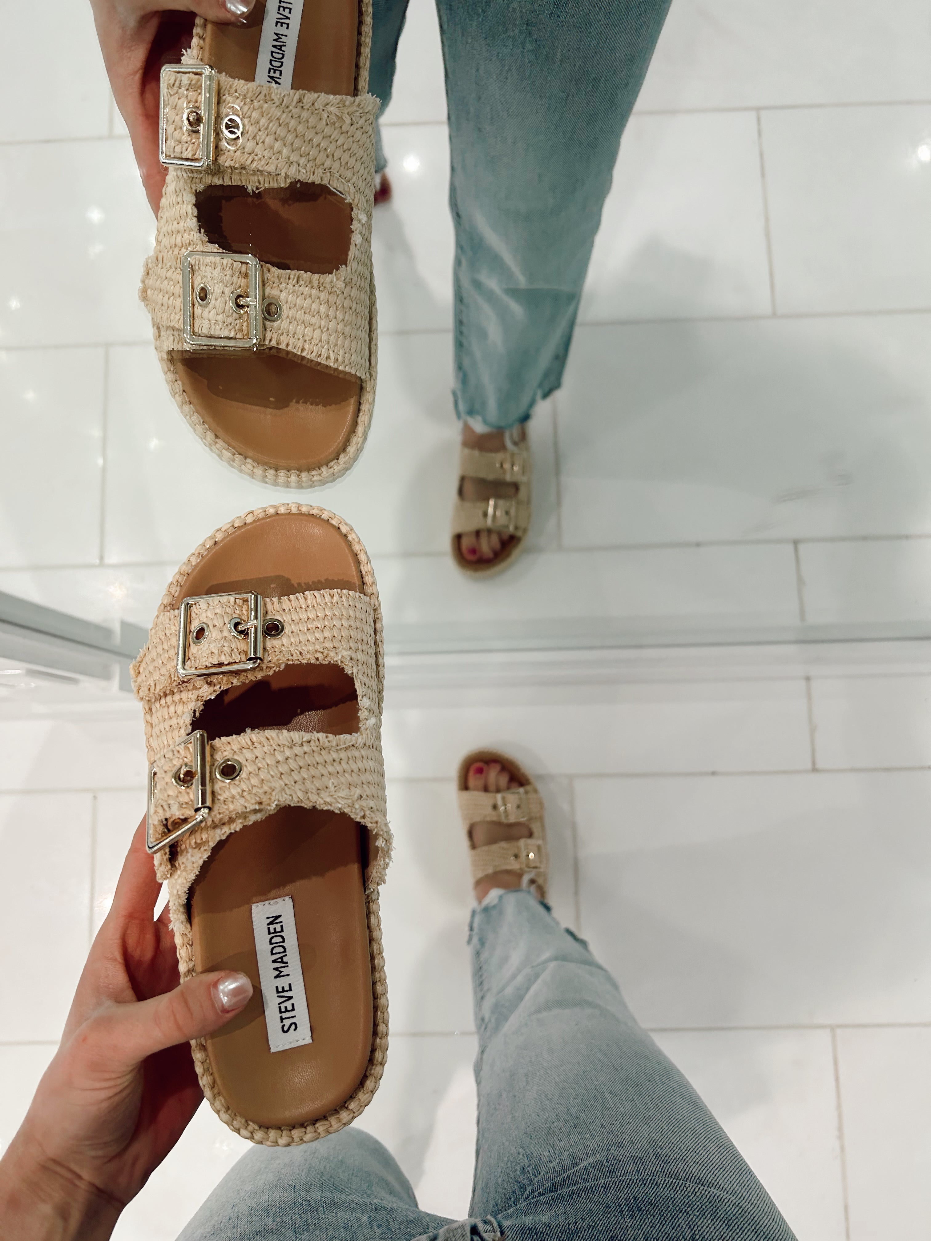- 2 buckled woven slide straps