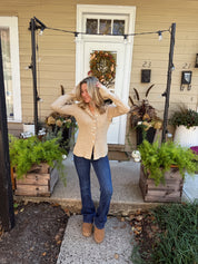 Collared Knit Sweater Cardigan in Sand