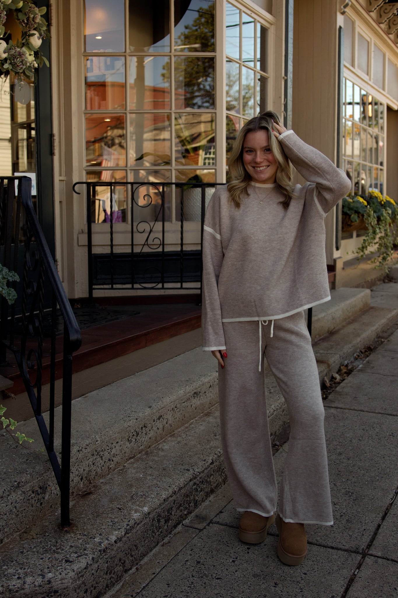 High neck long sleeve sweater top with matching wide leg sweater pants, softer than the clouds!!