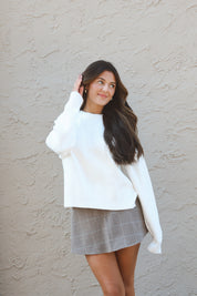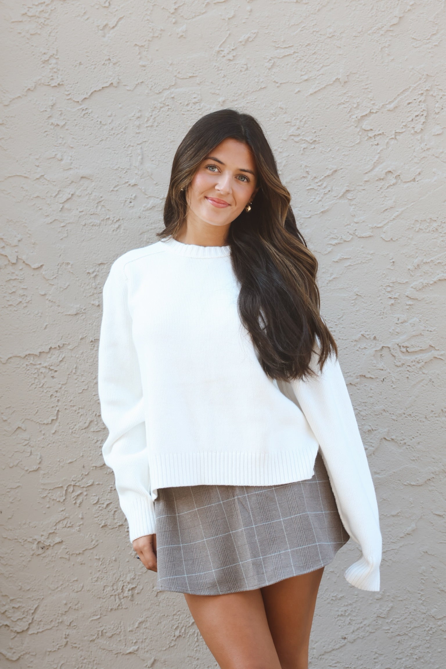 Extend sweater season with a cropped boxy sweater, slit at the sides and knit from lightweight cotton yarn.