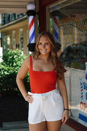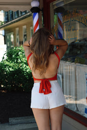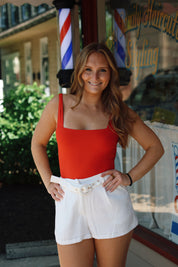 Soft and stretchy wide neck double lined bodysuit with tie bow feature in the back.