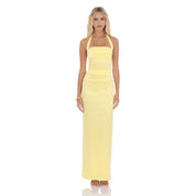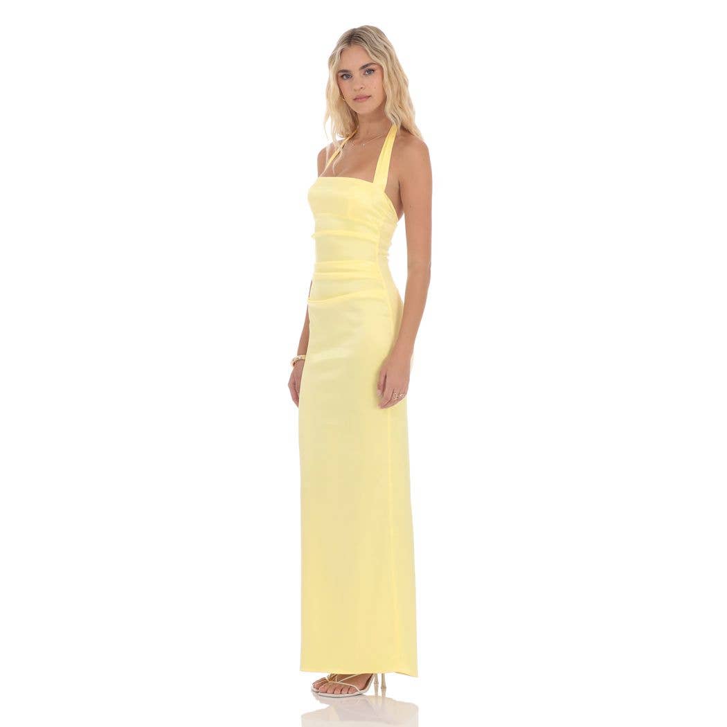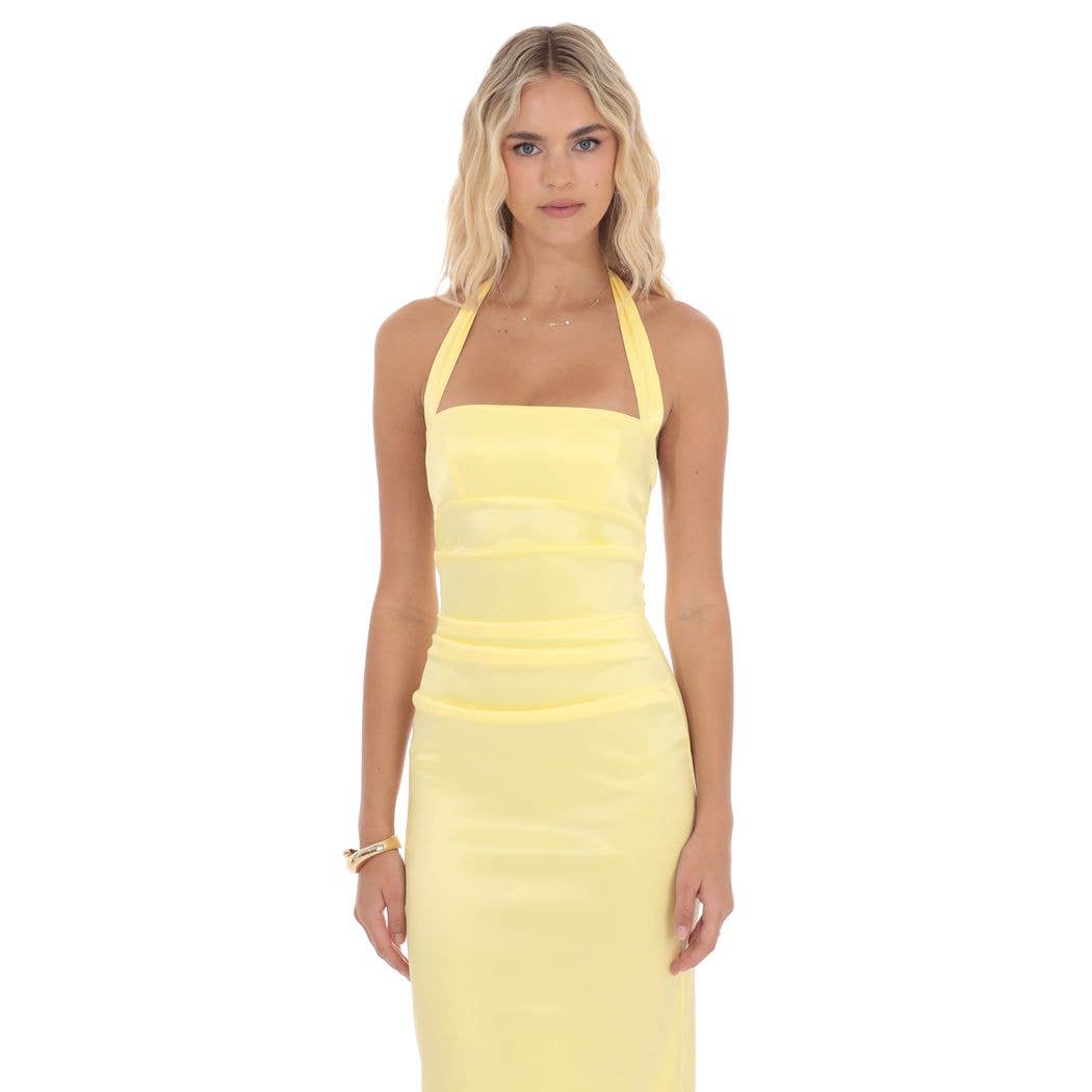 Satin Halter Maxi Dress in Yellow